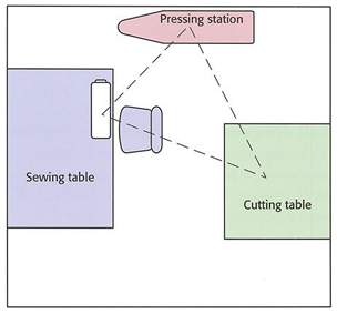 Lois L. Hallock bring up another point to consider (in her book Creating Your Perfect Quilting Space) when it comes to setting up the work triangle: