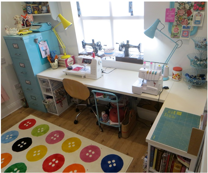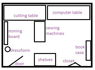 Is your studio in a small bedroom? PurpleHippoCreations uses multiple work triangles in her space.