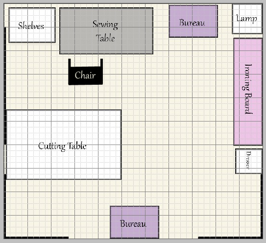 Next, make paper “furniture.” Decide if you’ll use your existing furnishings or purchase new quilt-specific cabinets and storage units. Measure your existing or new furniture and draw to-scale representations of these on a second sheet of graph paper. Cut out these pieces so you can experiment with furniture “arrangement” without actually moving heavy pieces. Note where large doors or drawers open and table extensions take up space.