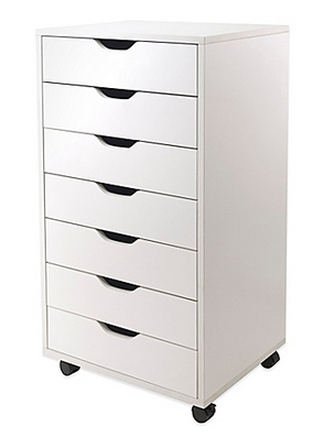 We also like the taller 7-drawer Winsome Halifafax. We could use it to hold all of our ribbons, trims and small art supplies. With the same look as the Alex Ikea cabinet, it would continue the streamlined look in our studio.
