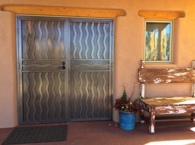 After a house purchase in Santa Fe, Nancy Arseneault, who has been quilting for forty years, began to take a serious look at finding a dedicated studio space. With no room in the house to accommodate several sewing machines, a long arm, as well as a design and work space, the idea of an addition blossomed. Santa Fe, however, has fairly strict building codes and restrictions when it comes to building, as did the Home Owners Association. Trying to see out her vision, while working through the maze of constraints with two organizations, was a bit of a challenge. But in the end, a lovely, calm and well organized studio space was indeed achieved.