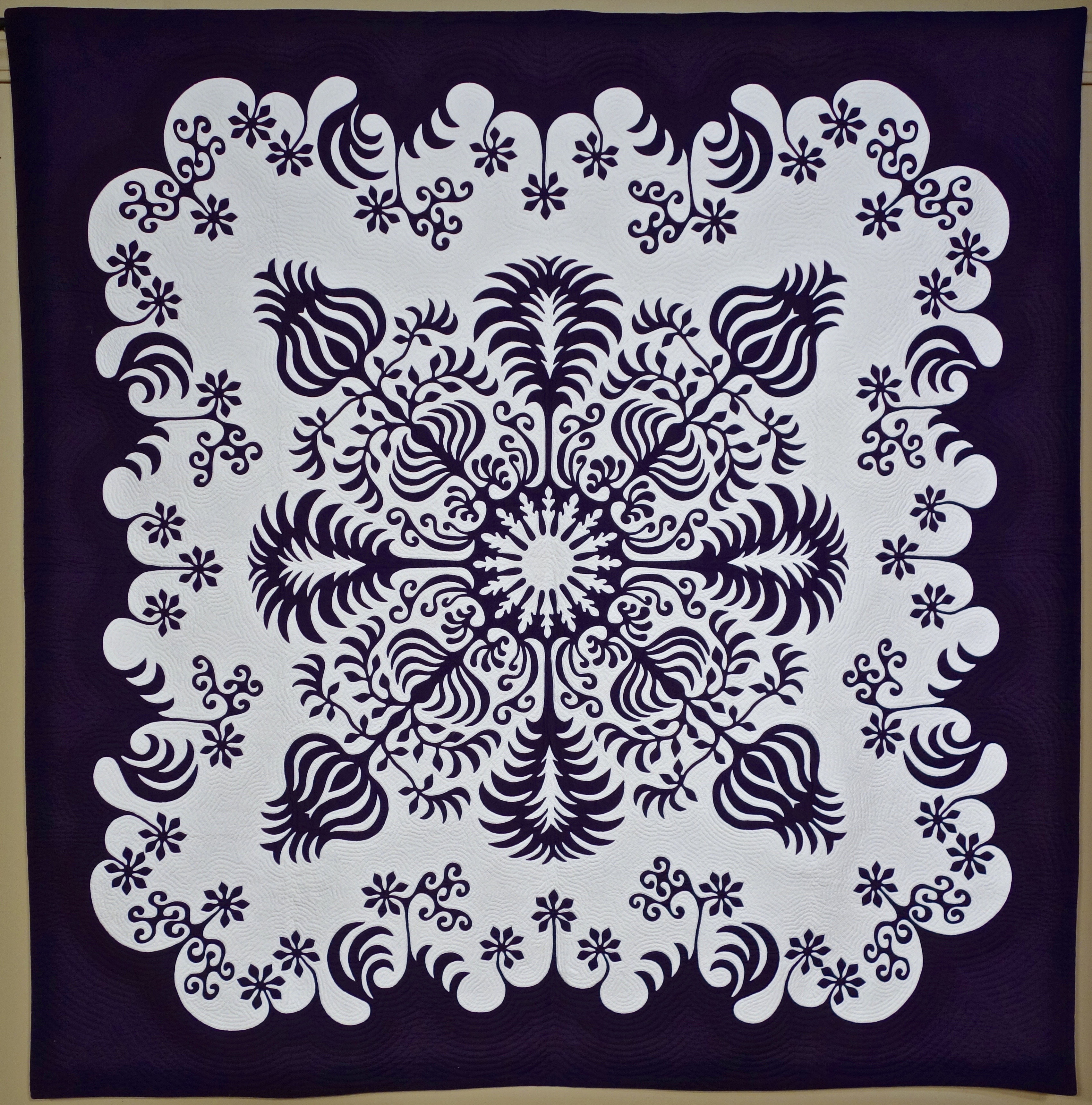 Rosa made a beautiful two-color quilt and created it in the Hawaiian appliqué style. Star members can learn her technique using the Apliquick tools in Show 1912: Hand Appliqué Revolution: From Frustration to Perfection.