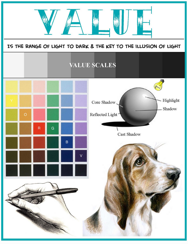Color and Value- Objects that are further away are cooler in color temperature, while objects that are closer are warmer. Objects that are further away are lighter in value, while objects that are closer are typically darker in value.