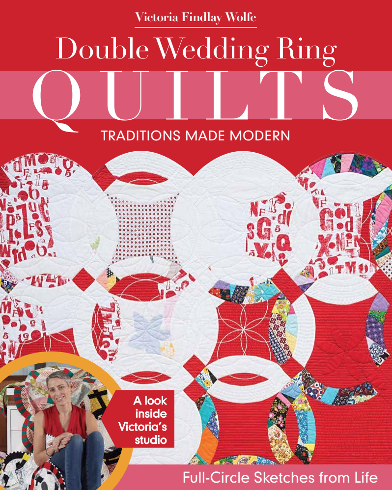 The "Bright Lights Big City" quilt is from Victoria's book, Double Wedding Rings, Traditions Made Modern. The pattern is included in the book.