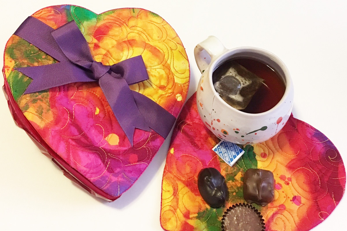 Teri Tope (of TeriTope.com) at WeAllSew.com has a quick project to warm your heart. It's a Candy Box Cover and Mug Rug all in one. Easily adaptable to any size box of chocolates, you will soon be making your hearts galore of these covers (which double as mug rugs) to surprise your favorite valentines.