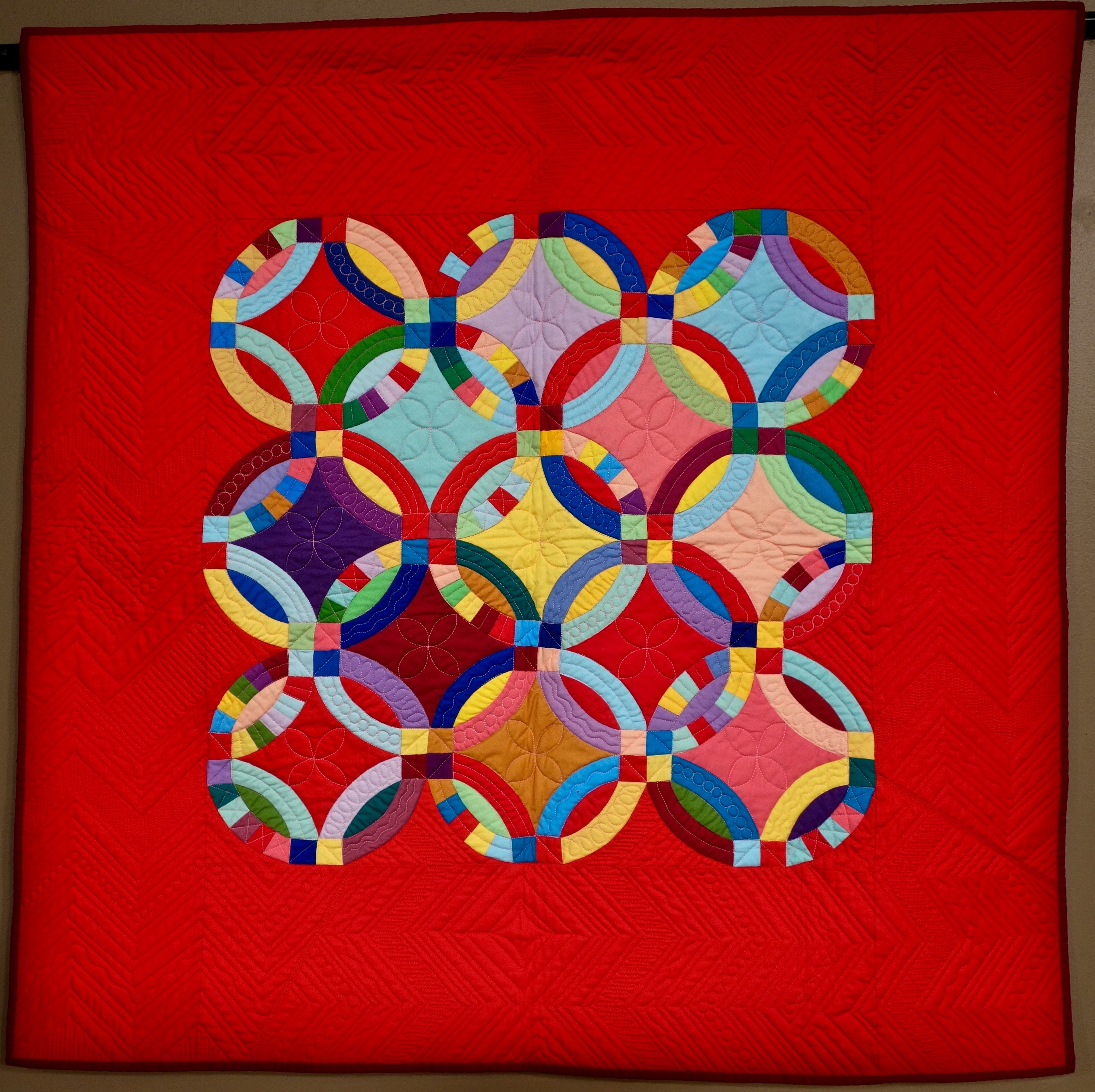 This bright little beauty was created using Victoria's Double Wedding Ring block technique.