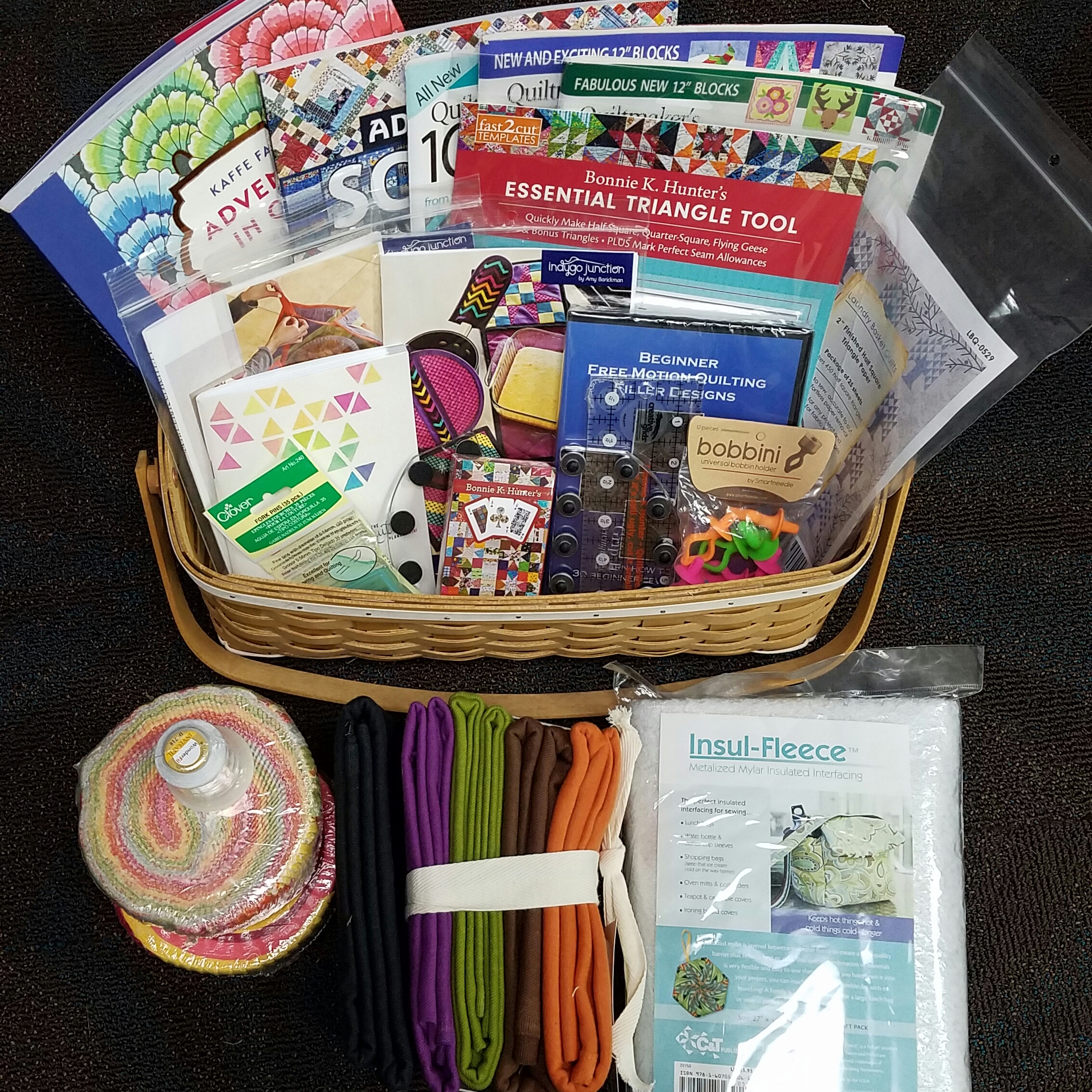 International Quilting Weekend will be celebrated at TheQuiltShow.com March 17-19. The contest this year will include prizes from some of your favorite artists. We will be introducing you to all the prize givers soon. First up is Bonnie Hunter. This basket of goodies will make a quilters heart happy. More instructions will come as we get close to the date. Don't miss it!