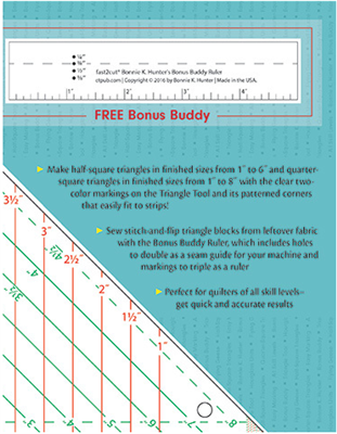 Bonnie K. Hunter's Fast2cut Essential Triangle Tool: Quickly Make Half-Square, Quarter-Square, Flying Geese & Bonus Triangles • Plus Mark Perfect Seam with the FREE Bonus Buddy Ruler