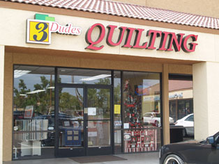 Our next stop was 3 Dudes Quilting, and boy was it a stop...we actually broke down in the parking lot and you can read about that whole drama on www.wooliemammoth.blogspot.com. But, needless to say...it was a perfect place for this quilter to be stuck!!! Lovely selection of fabric for any quilter. Ray, Jeff and Frank have collaborated to make a beautiful working relationship at the shop and home. Ray is the coordinator of the Row-by -Row for both Arizona and New Mexico! All three have been quilting for about ten years and Ray designs and sells patterns in the shop. Jeff has many award-winning quilts and is the quiet one...but, methinks Frank may be the most popular dude although he never comes to the shop. He is the dude who makes sure there are fresh baked cookies everyday in the shop!!! And, fresh roses from their garden!