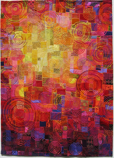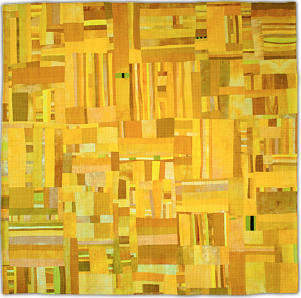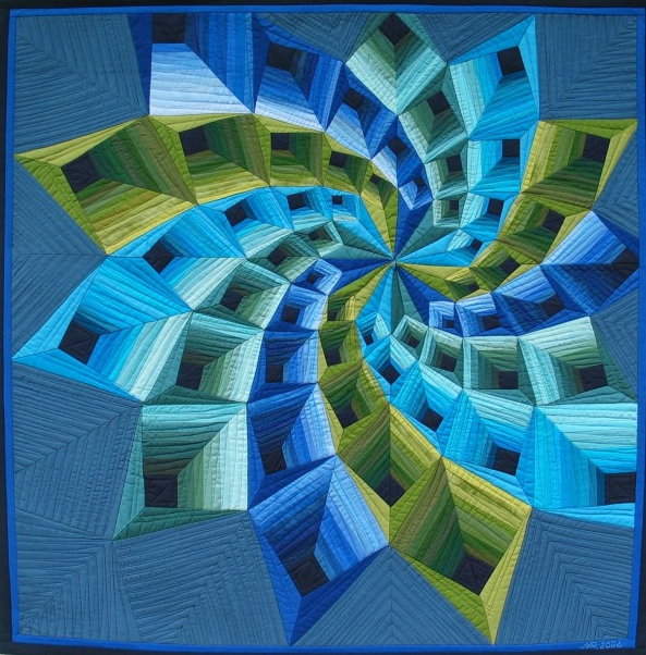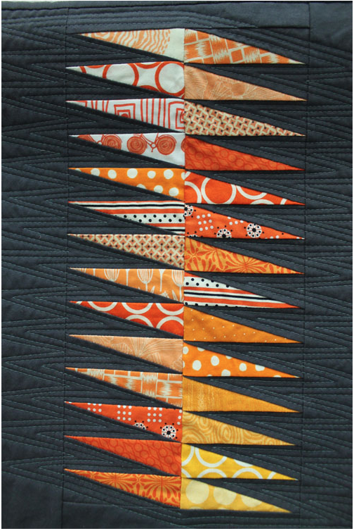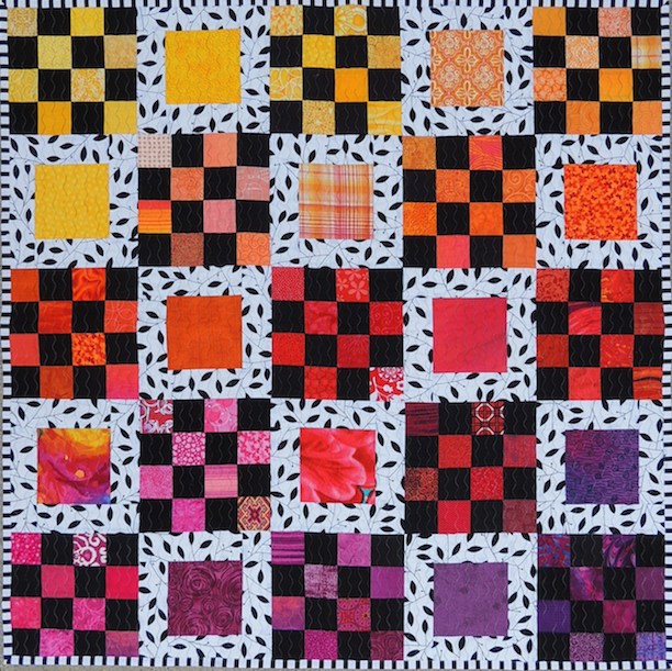 Block Buster by Martha Rogglis used a wide range of fabrics from Chartreuse to Blue along with black.