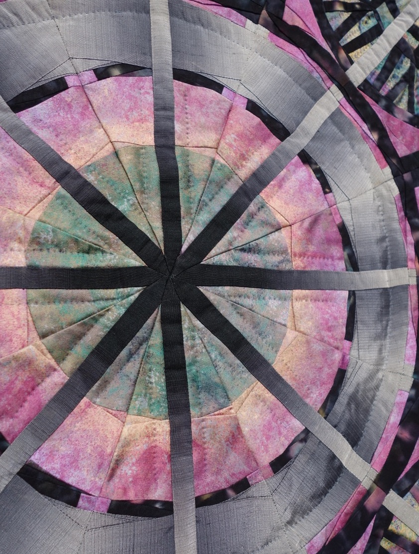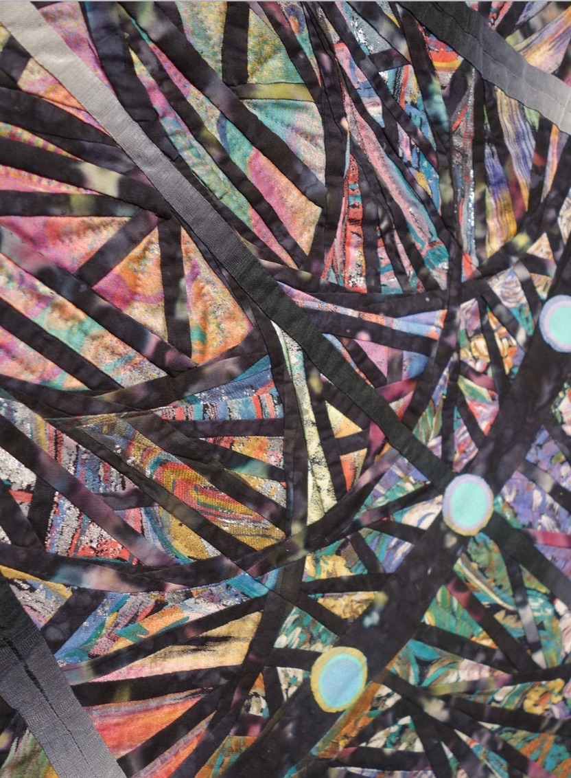 Paula writes about this quilt, "I aimed for a conceptual shift, unsettling a symmetrical object that New Yorkers take for granted will be solid ground."