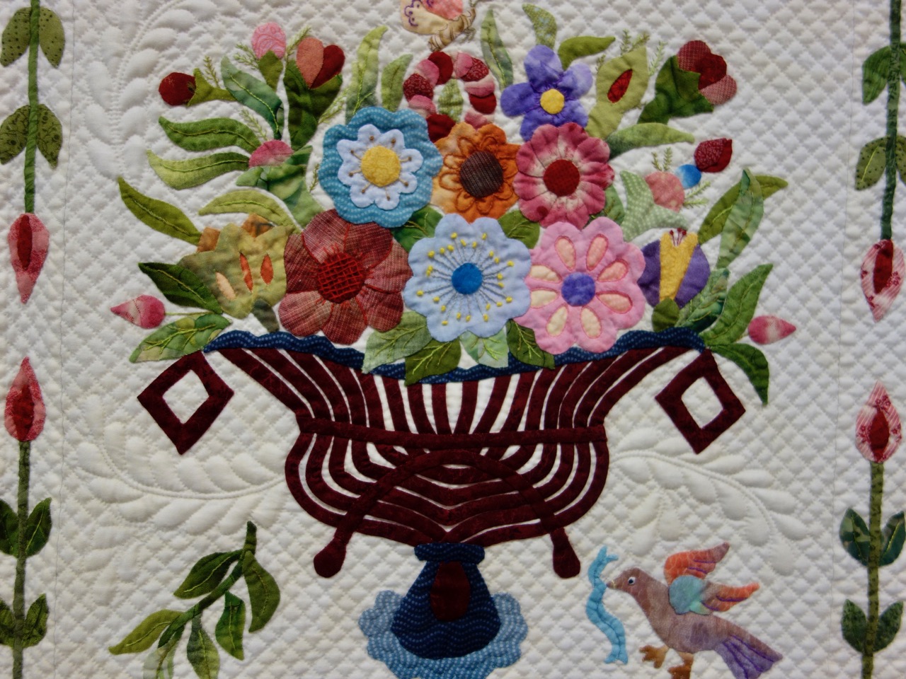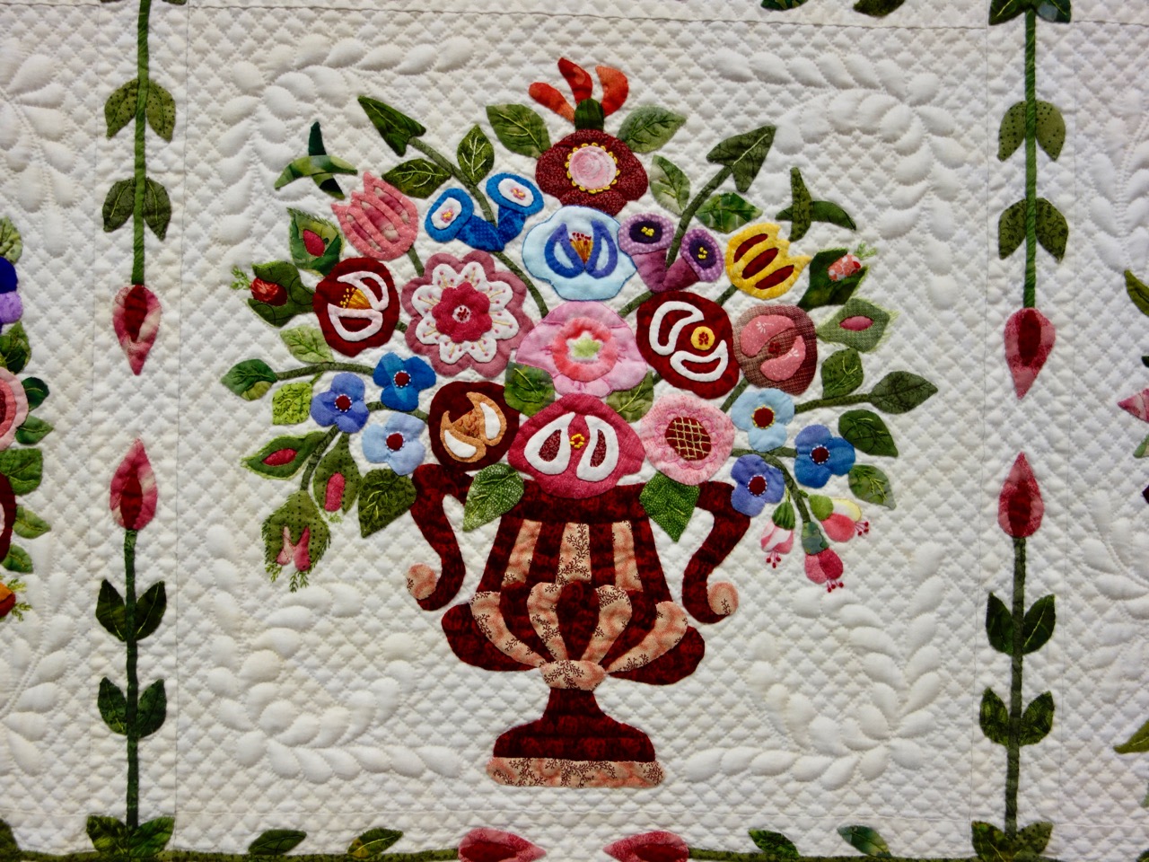 Fujiwara Junko took first place in the Hand Quilting category at Paducah with the 78" x 78" quilt "Fantastic." The design source is The Baltimore Album Quilt Tradition by Keiko Miyauchi. It uses hand appliqué, hand embroidery, trapunto, and hand quilting. This category (like all of them we suppose) was a very hard choice for the placement of the award-winning quilts. Click below to see the 2nd Place and 3rd Place quilts if you missed them.