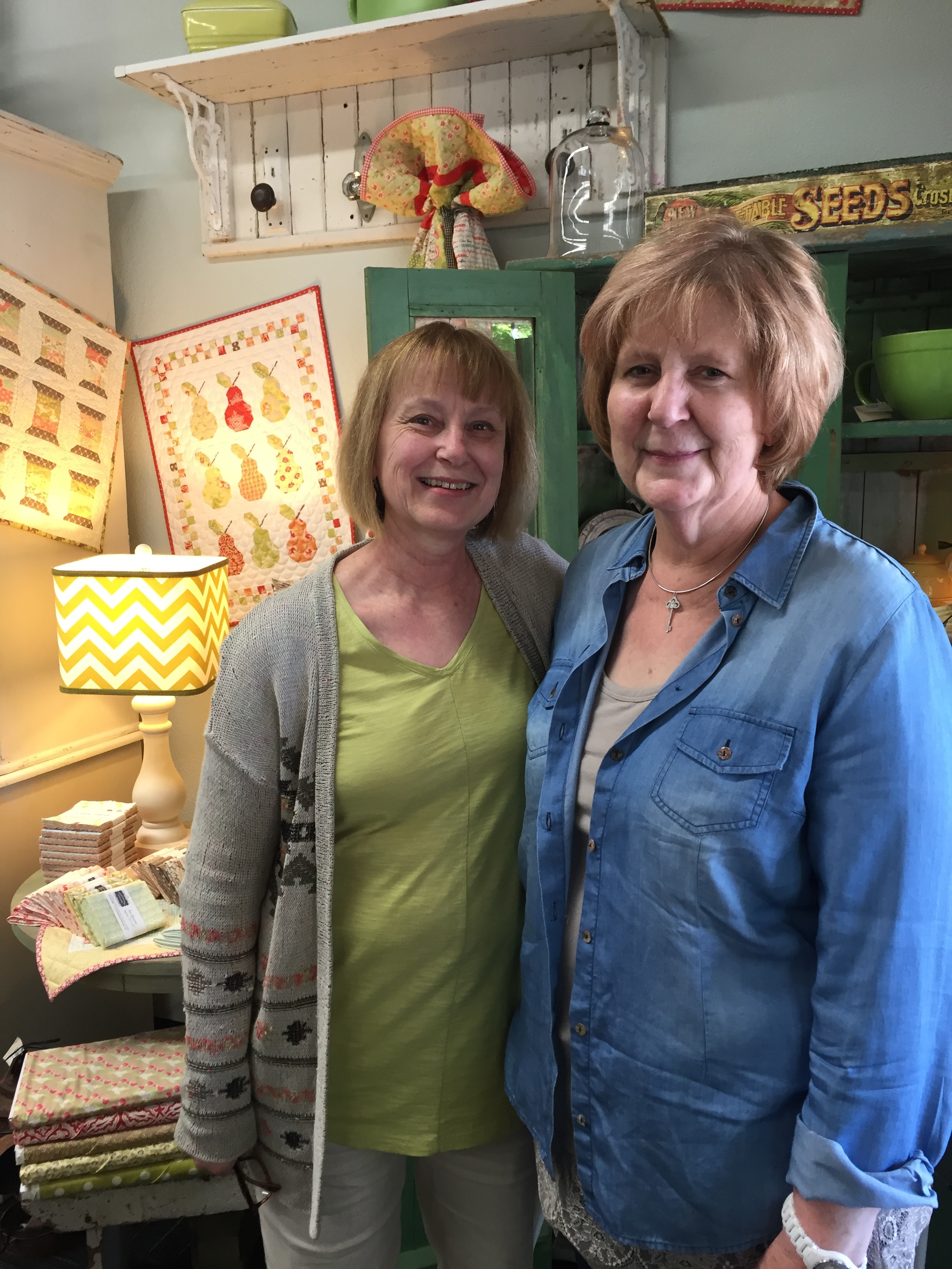 Just off of Oregon I-5 located in the Charbonneau area of Wilsonville, Jan (the mothership) and Brian (the son), have reopened Hollyhill!!! It makes the quilting heart happy to see such a previously wonderful shop emerge in this new location. The drive to the shop was breathtaking as you will see in a future Quilt Roadie video. It is sweet, quaint, and happy with Brian's vignette touches, and the cherry on this sundae is a bakery right next door! That is if you get lightheaded with all the shopping :)