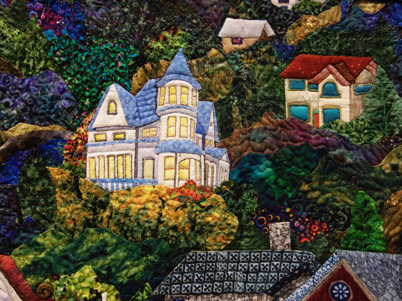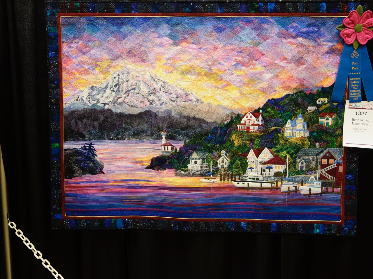 Congratulations to Kathy McNeil. She had two 1st Place quilts at Paducah 2017 (you will see the other one soon). This 58"x43" quilt "Best of the Northwest" was quilted on a stationary machine. She used a variety of techniques: Hand Appliqué, Free-Motion Quilting, Tsukineko Inks, Interfacing, and Machine Piecing.