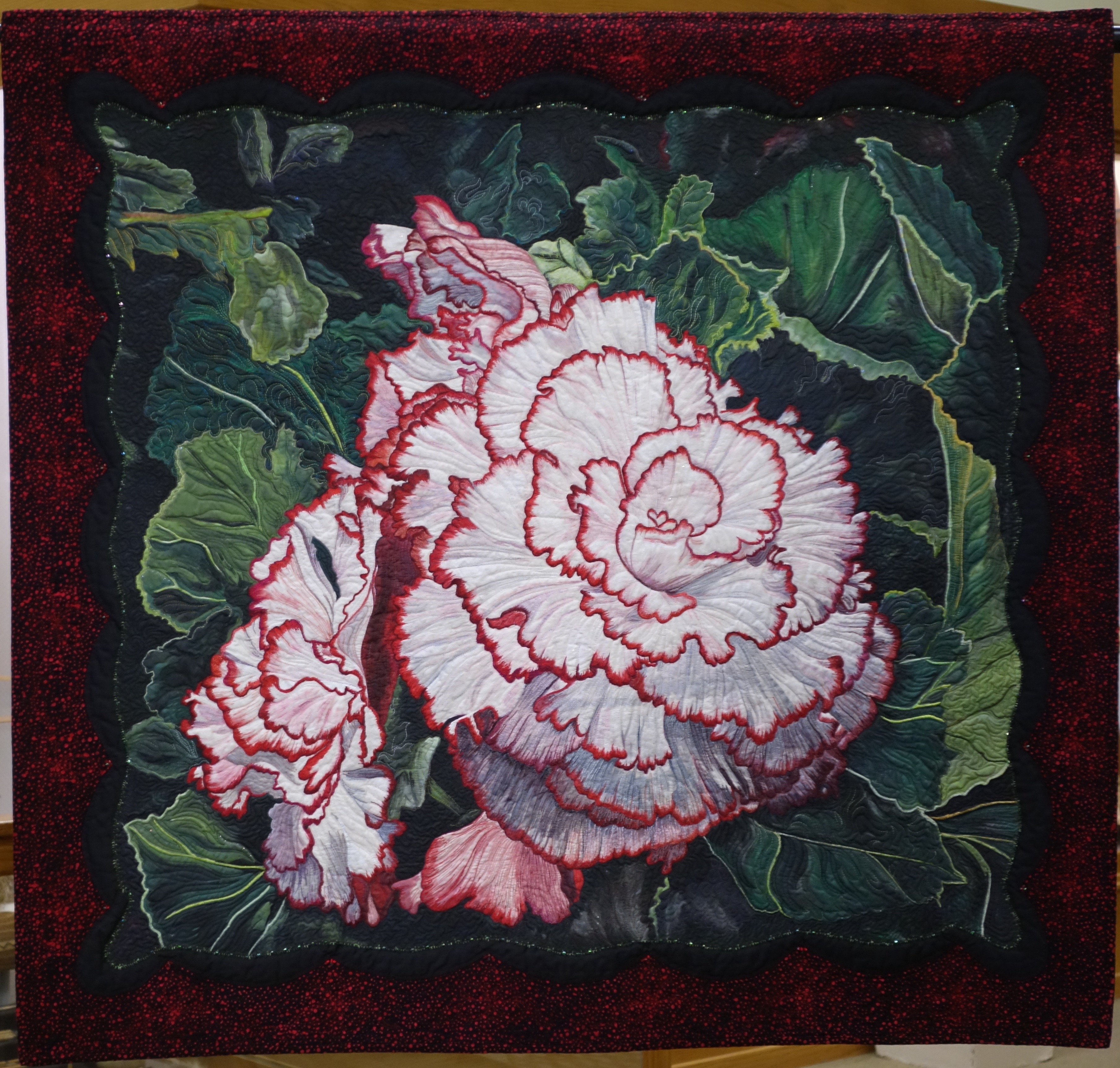 Begonia Picotee Lace was proudly displayed at Pat's National Quilt Museum Exhibit in 2017. Pat writes, "My husband Gary took a beautiful shot of this begonia and I decided it would be an interesting subject." We agree, and it's a beautiful quilt.