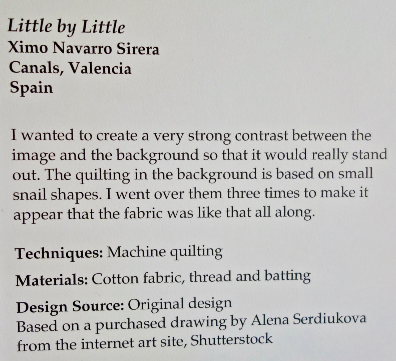 This is the 3rd Place Quilt, "Little By Little"