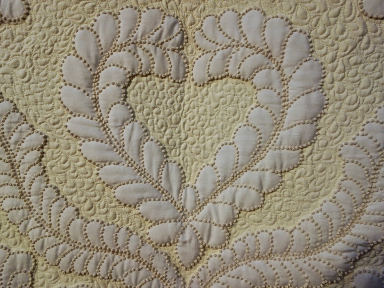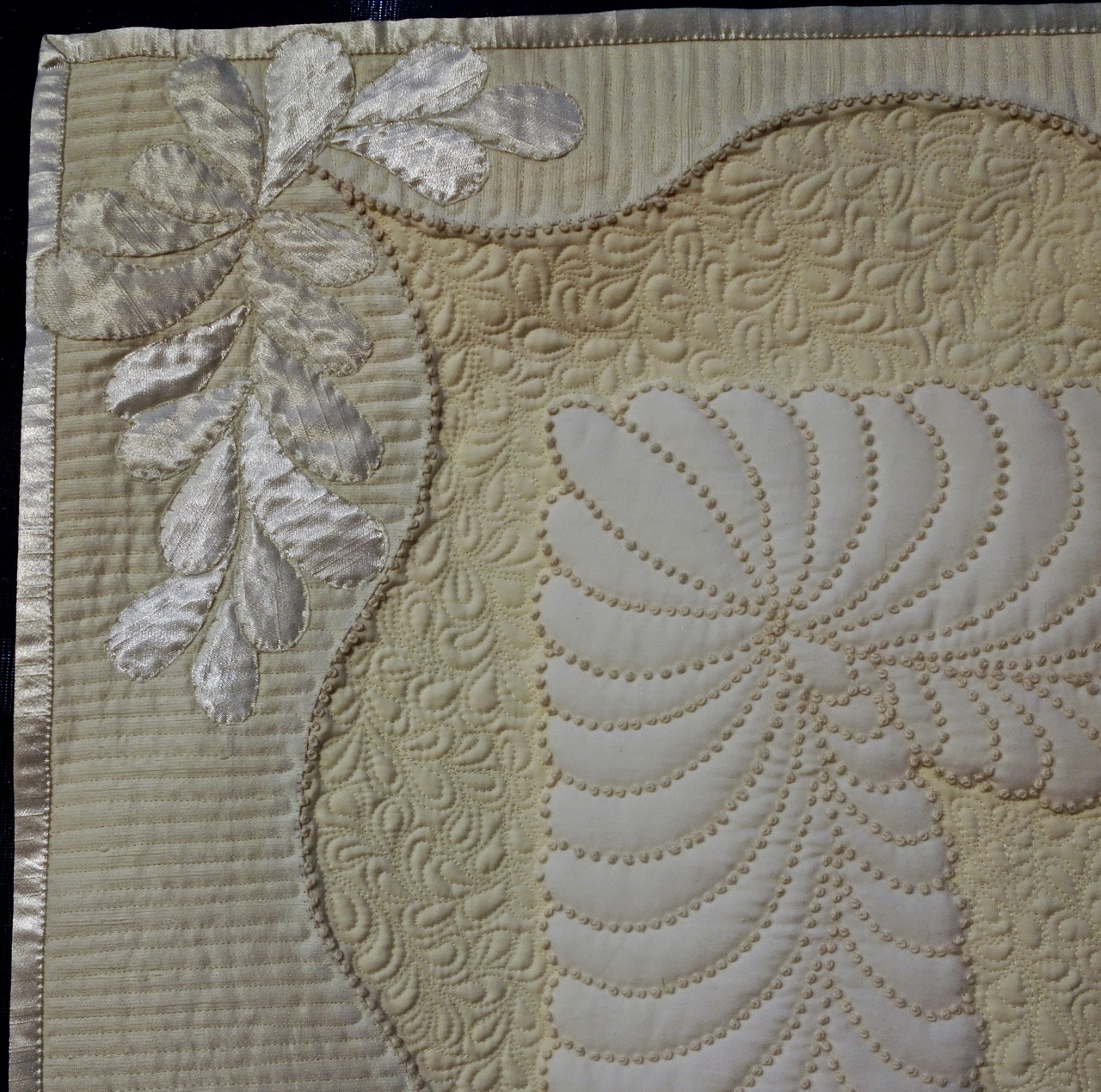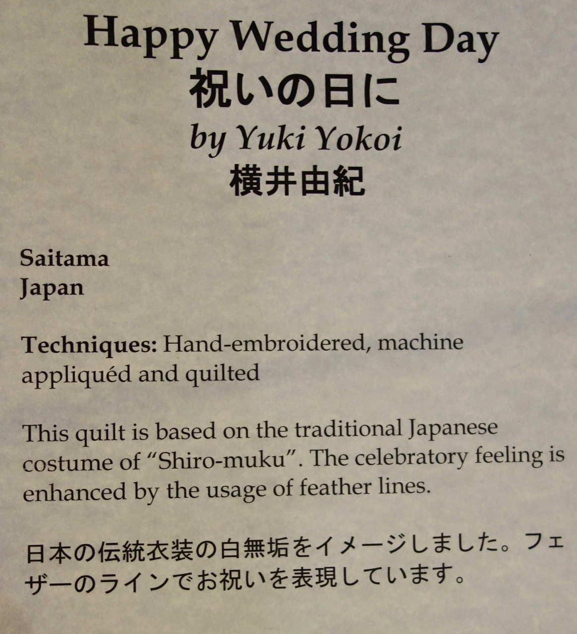 In the Japanese Exhibit at Houston 2016, Yuki Yokoi displayed her quilt, Happy Wedding Day. The close up shows the amazing work done to create that wedding feeling.