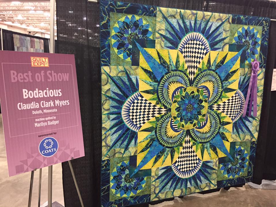 See the 2017 Quilt Expo Best of Show 11 fShare Tweet Congratulations to Claudia Clark Myers and Marilyn Badger whose beautiful quilt, Bodacious, is the 2017 Quilt Expo Best of Show winner! Click here for a complete list of winners. < Prev Next >