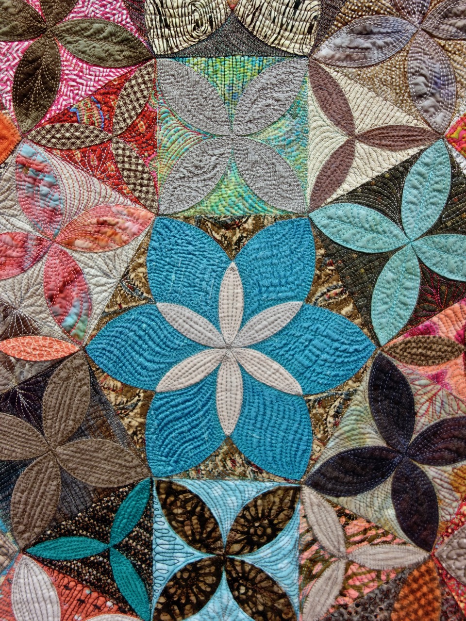 We were amazed at how this quilt was put together. We think the piecing in Karen K. Stone’s quilt Wonderful World is amazing and we love the colors too. Karen’s quilt won 2nd Place in the Large Quilts - Stationary Machine Quilted category at AQS QuiltWeek - Spring Paducah 2017.