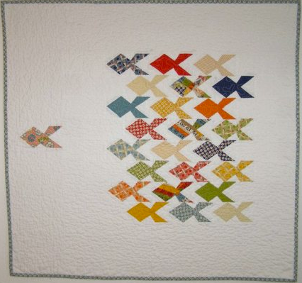 So what are the tricks for creating emphasis when it comes to your quilt? Below are six ways you can make your quilt have visual impact when it comes to standing out from the crowd. But remember, your strongest focal point (e.g. the bird) should have the strongest weight visually. For example, if you had two or three of the same size and type bird in the quilt on the left, the end result would not be as effective as this one goofy guy.