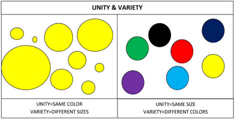 An easy way to remember is... Unity adds harmony; Variety adds interest.