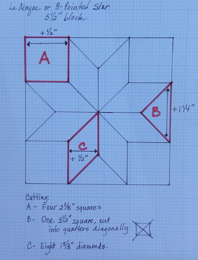 Using the 8 pointed star block, see how far you can push the variety. You can do this either by colored pencils, markers, etc. or with fabric.
