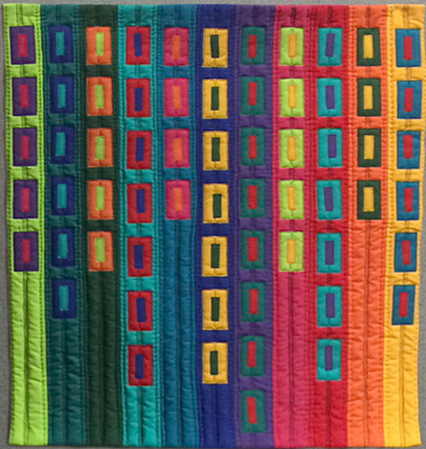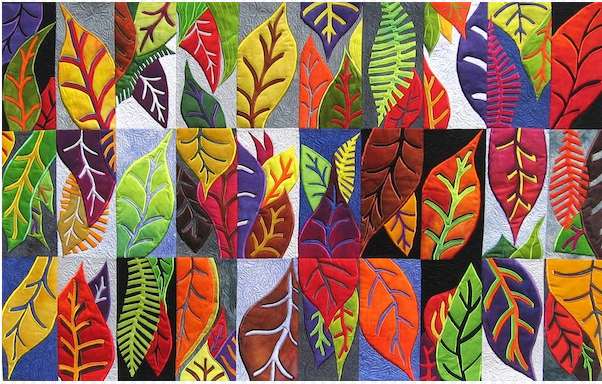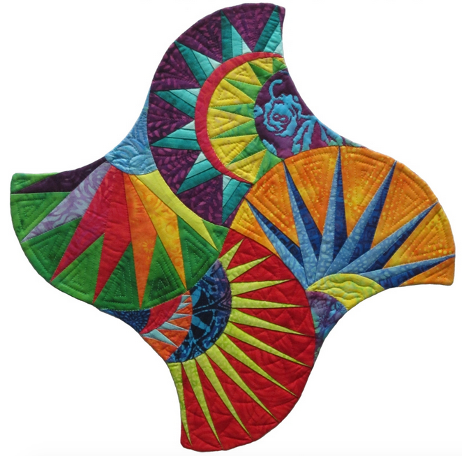 In my quilt, Pretty Planet #10, the design principal of balance plays an important role. When elements in a design share equally in interest or visual weight, balance is achieved. The viewer’s eye travels the art work and senses the placement of the various design elements, giving the viewer a sense of harmony or balance within the artwork.