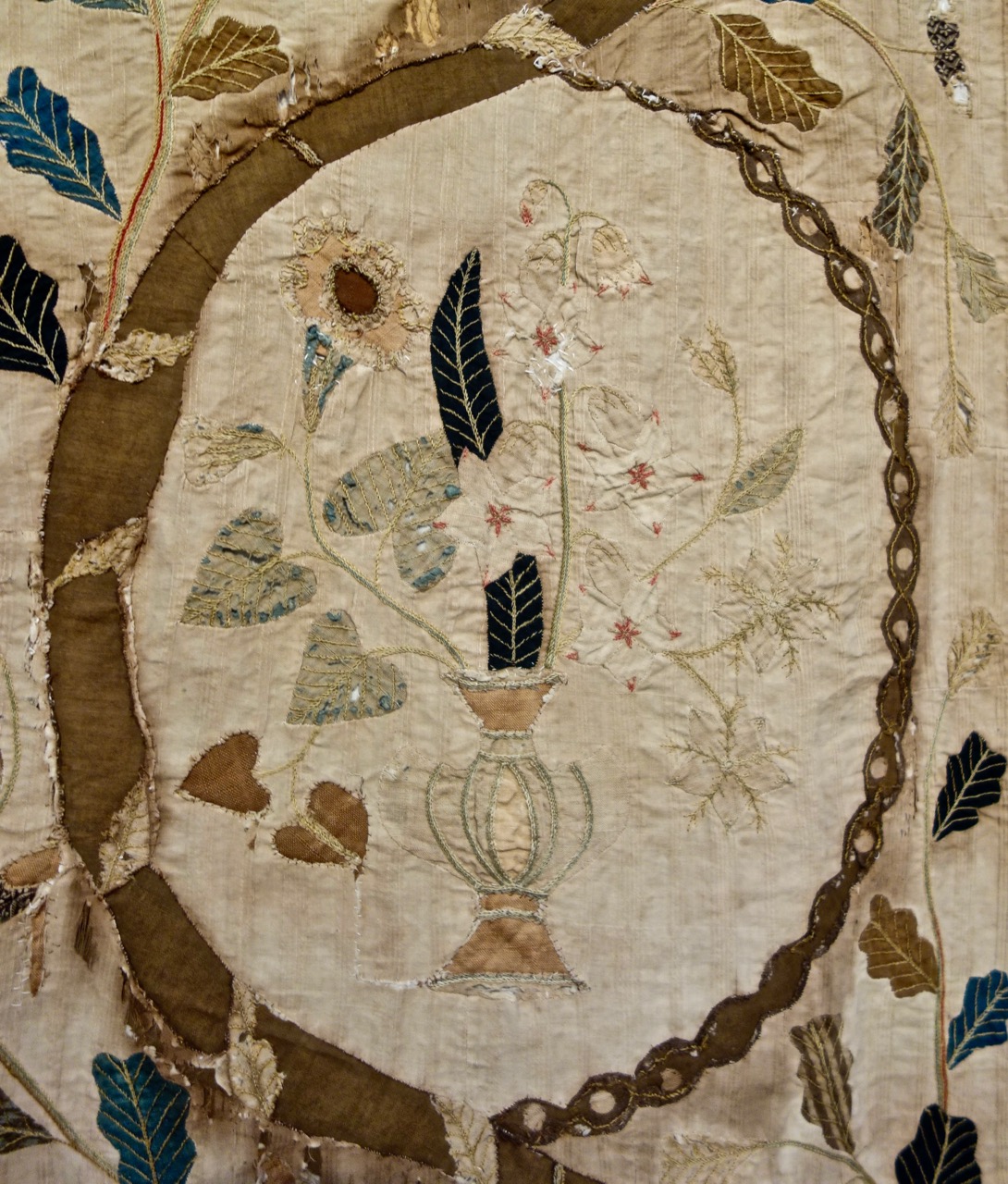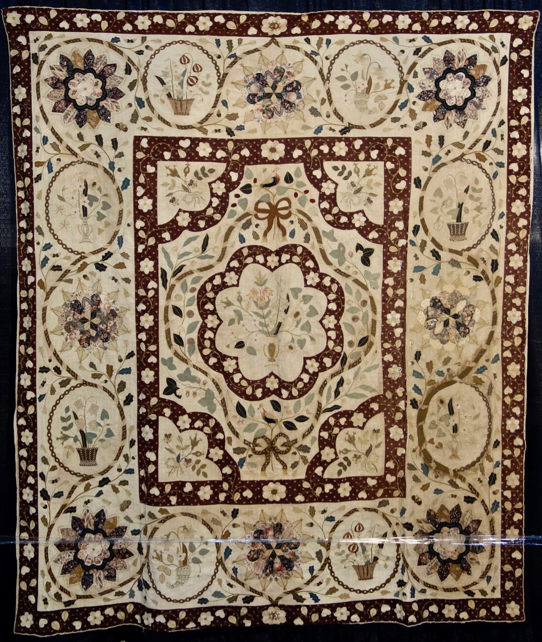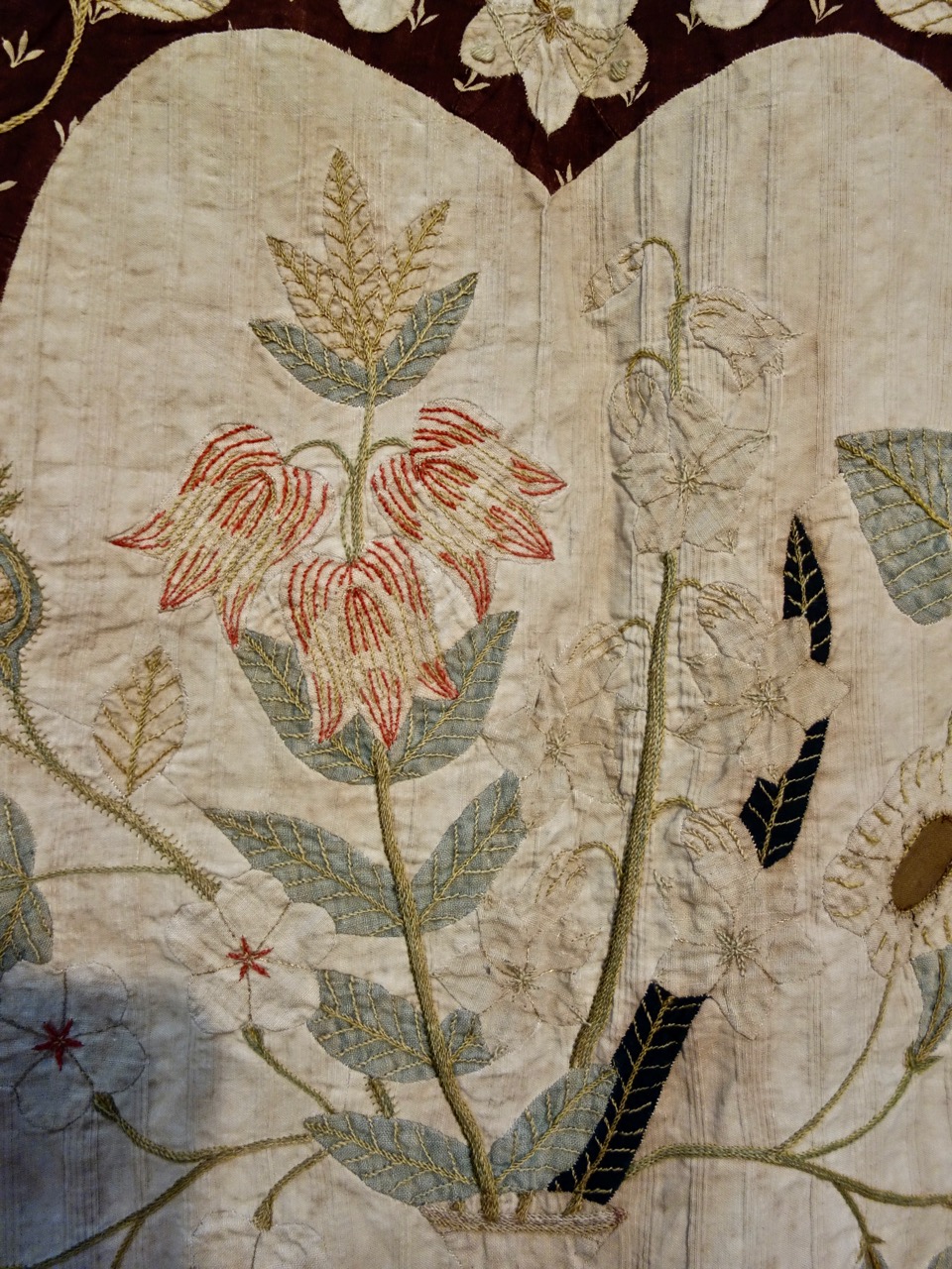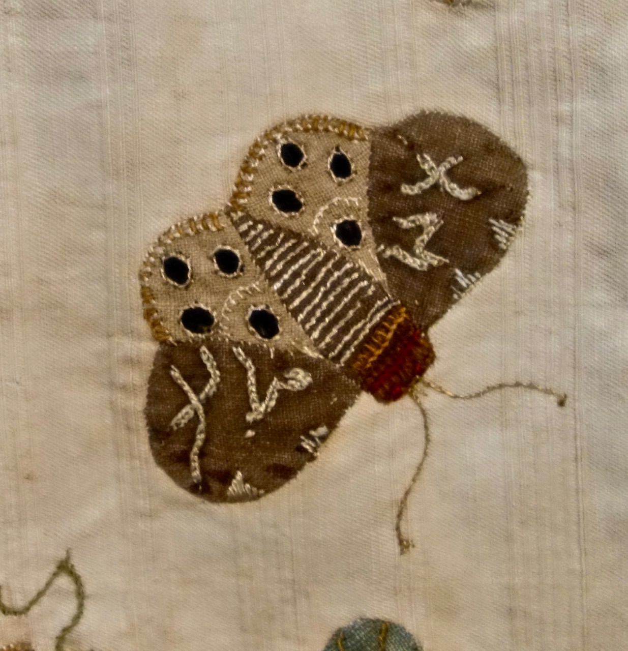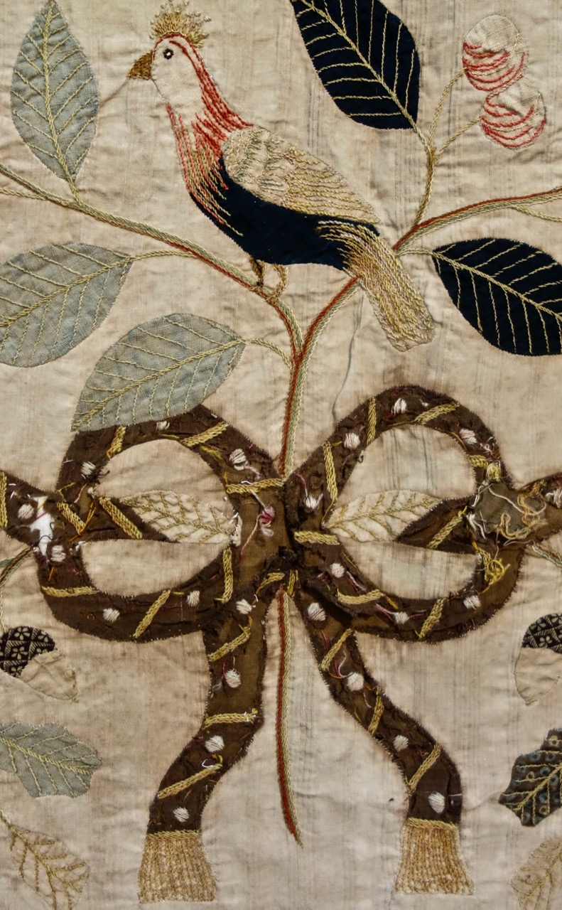 Capt'n John--"When I get to the quilt area at the Houston Quilt Show, I run through looking at categories and the special exhibits to see if something really grabs my attention. I have seen a lot of quilts by now, but I never get tired of the variety and quality at these major shows. This year a special exhibit called "Quilts 1650-1850 From "Broderie" to "Broderie Perse" stopped me in my tracks. Here is one of the quilts. Sorry for all the pictures, but you really have to see all the detail to know why I was amazed." We will show more of these in the coming weeks. (The last picture is one of the butterflies. Can you find it on the big quilt picture?)