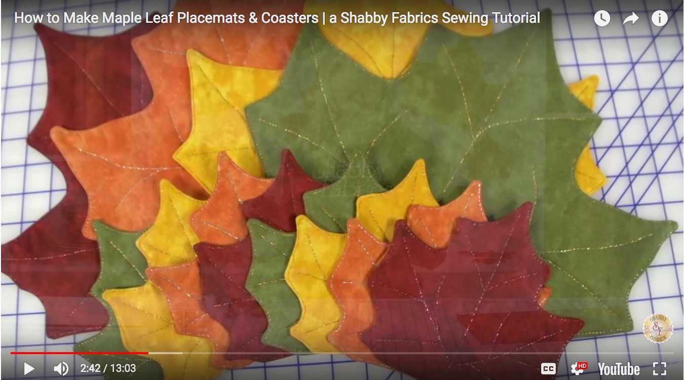Here's a fun and festive way to decorate your table for Fall. Jen from Shabby Fabrics has created a wonderful set of Maple Leaf Placemats and Coasters.