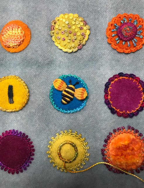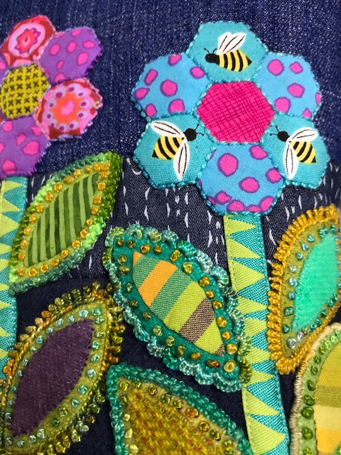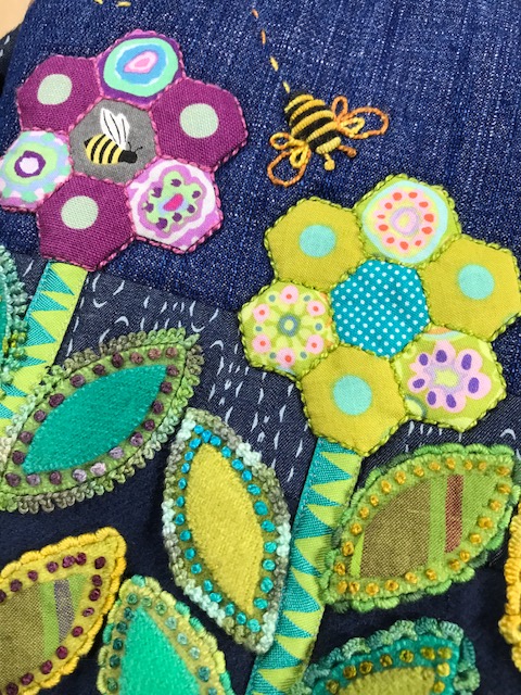 It was fun to see old friends stitching away. So, I put my name down for 2018...I am not going to be left out in the stitchers cold next year! Each time you take a class you get a bit more proficient...the little hexie stitching was by a stitching friend, Janet, and her mom on a bag. See how beautiful their stitches are. You improve your skill with each class and workshop!