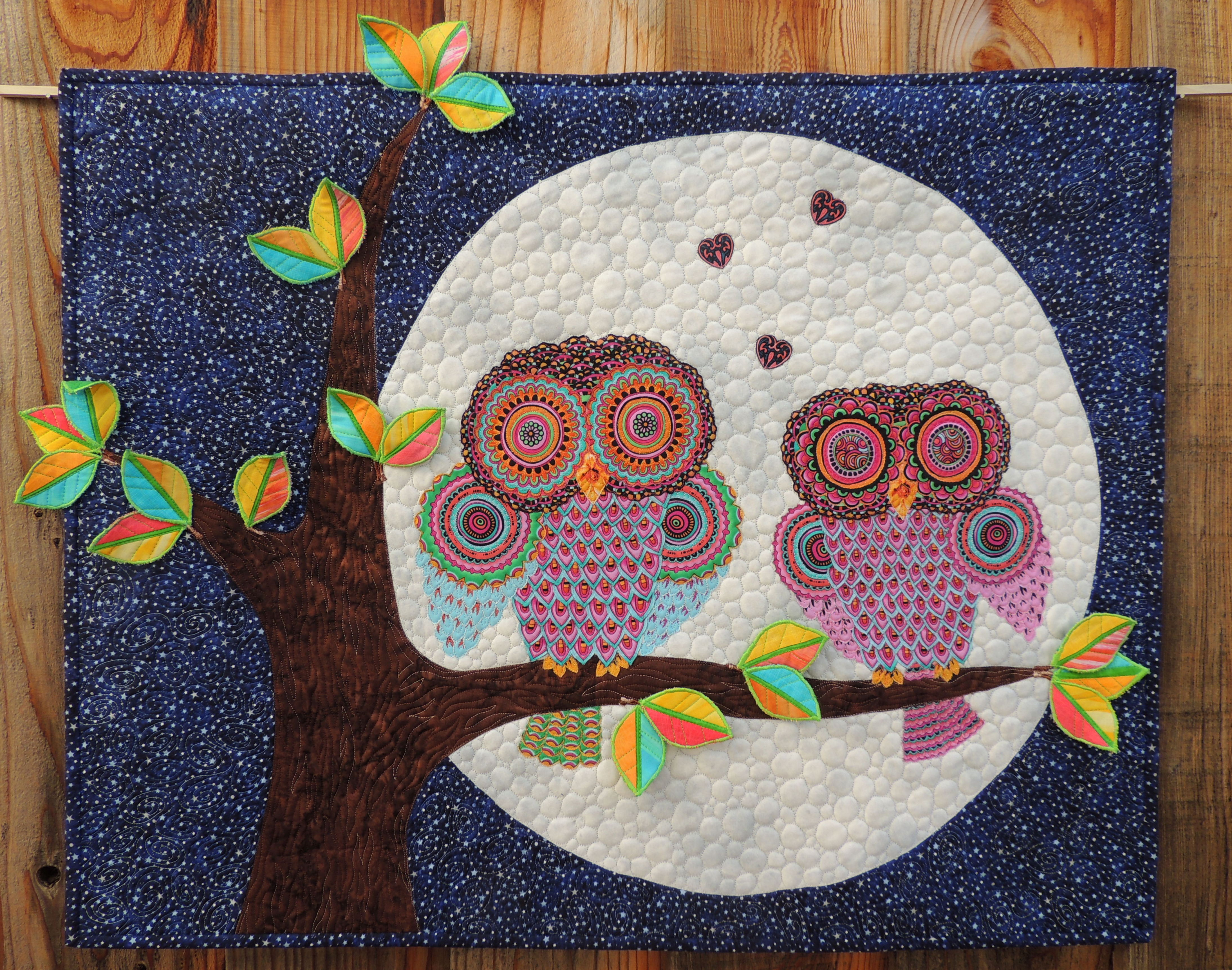 Mel's quilt, Owl You Need is Love, was part of the 2014 Hoffman Challenge Travel Collection. She made good use of the pattern in the fabric in creating her feathered friends.