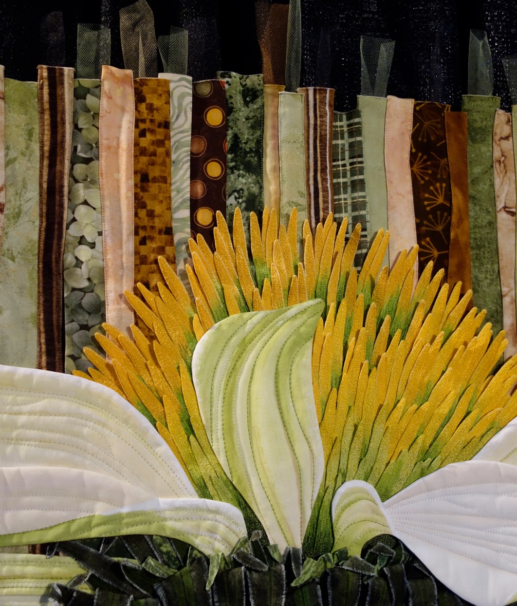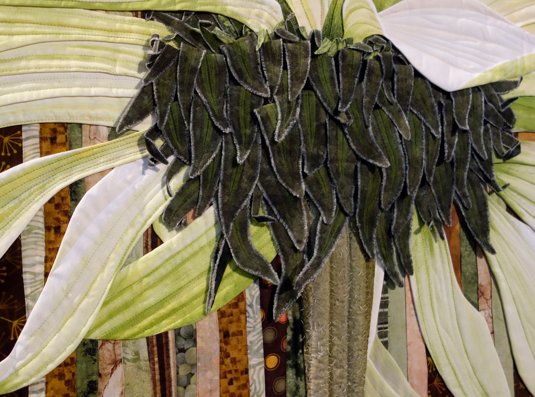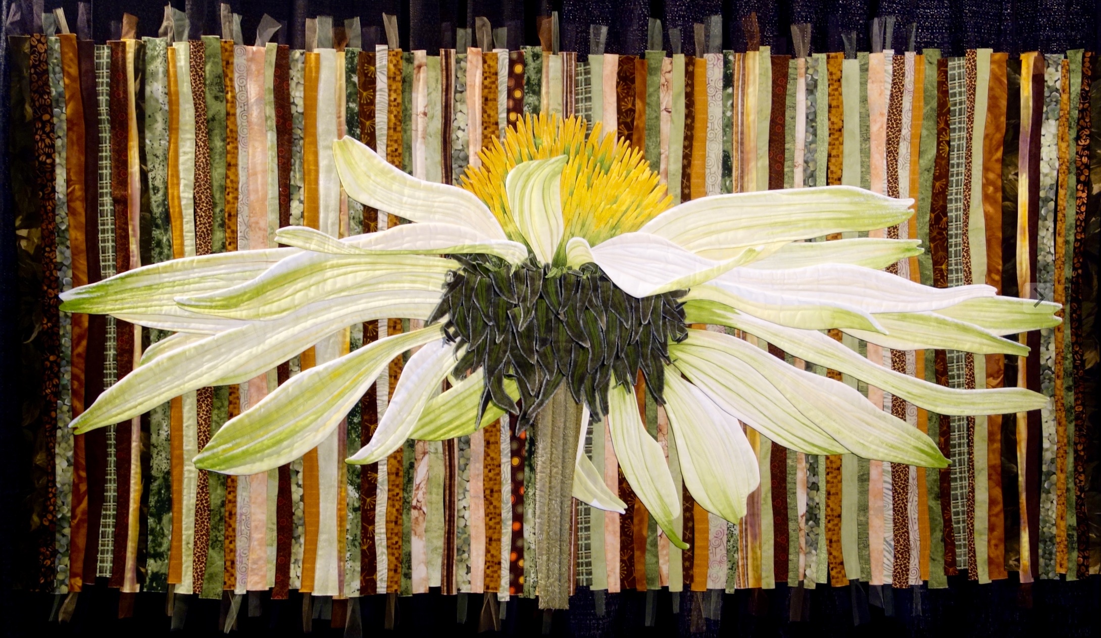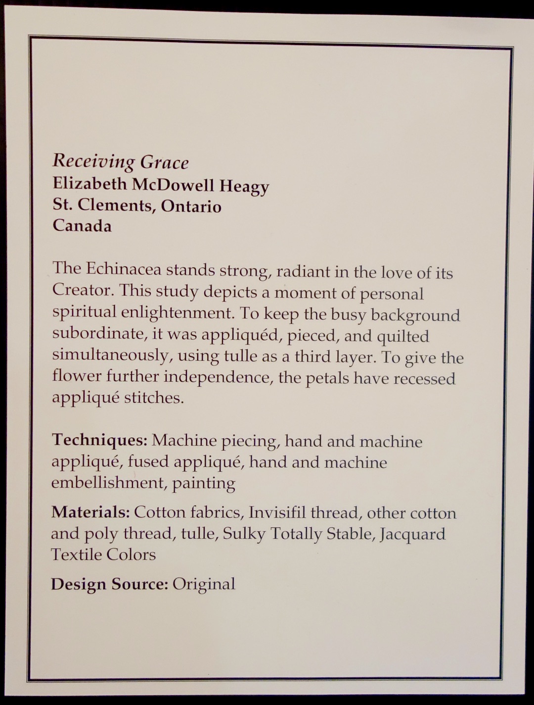 Elizabeth McDowell Heagy's quilt, Receiving Grace, was completed in a different manner, right down to the binding, of which, there is none. This beautiful quilt of an Echinacea was part of the Innovative Appliqué category in Houston 2018.