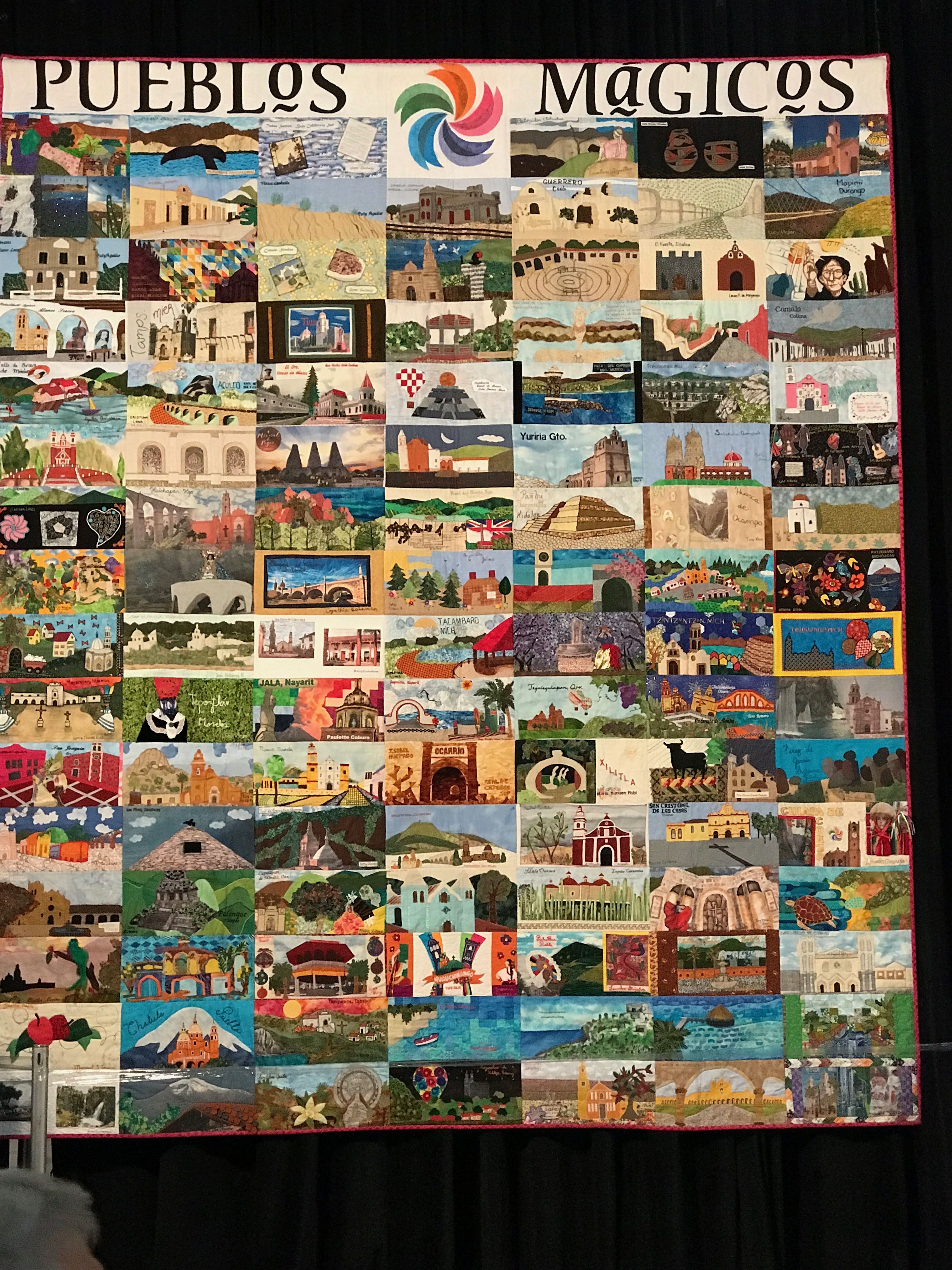 Thanks so much to Marisela Rumberg for sharing this incredible group quilt featuring Mexico's "magic towns"--cities across Mexico with exceptional historical, cultural, and natural features. This video barely captures the quilt's huge size and detailed landscapes, but we're so excited to share this bilingual Go Tell It! video from the Quilt Alliance with you. Enjoy the "Magic Towns of Mexico."
