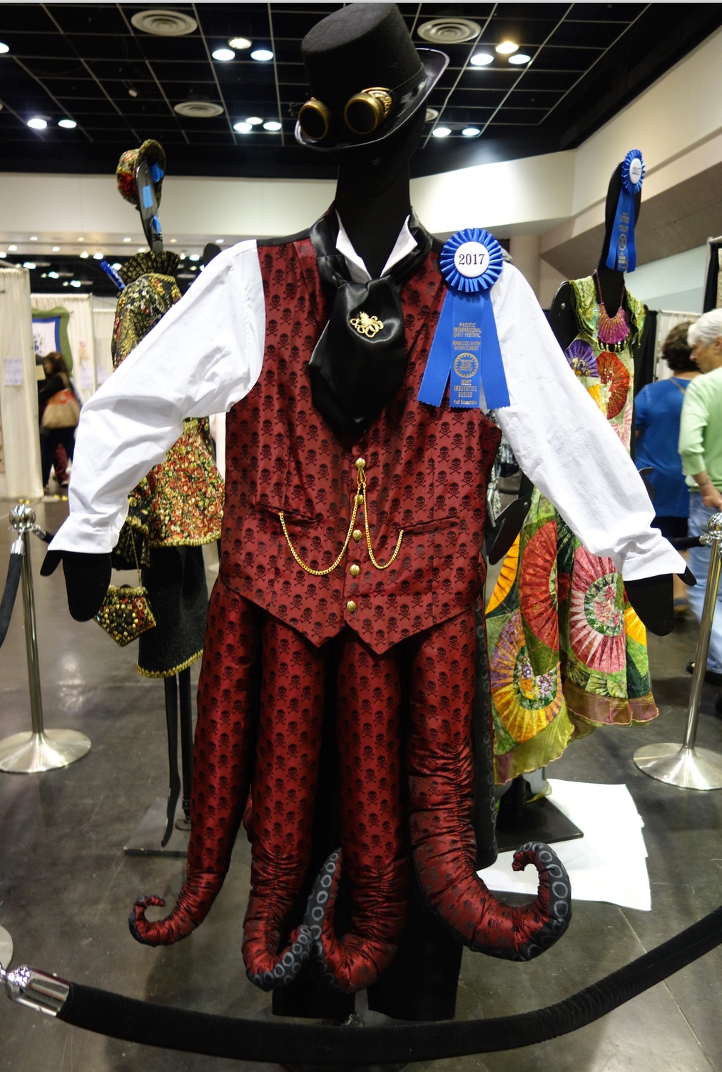 Many quilt shows have a wearable garment component to their competitions. The Pacific International Quilt Festival is no exception. Take a look at Annalisa Tay's, OctoGent, and it turns out to be very wearable.