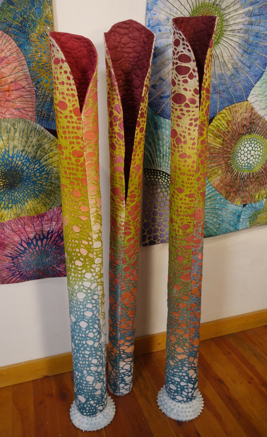 As for the piece it's self......Not sure if the cylinders alone are the "quilt" or the one hanging behind them are part of it. I'm guessing by the title the cylinders only are the piece. Interesting and innovative to be sure.