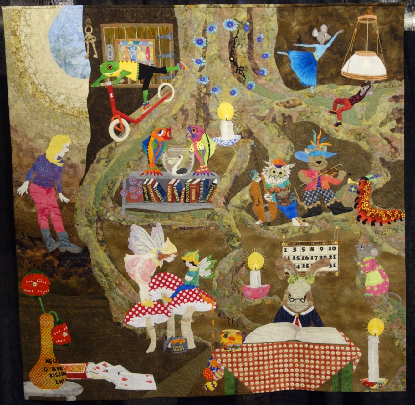 Beth Miller let her imagination run free when she created "Down the Rabbit Hole," featuring some favorite characters from Alice in Wonderland. This quilt brought a smile to our face when we saw it at the Houston Quilt Festival 2017.