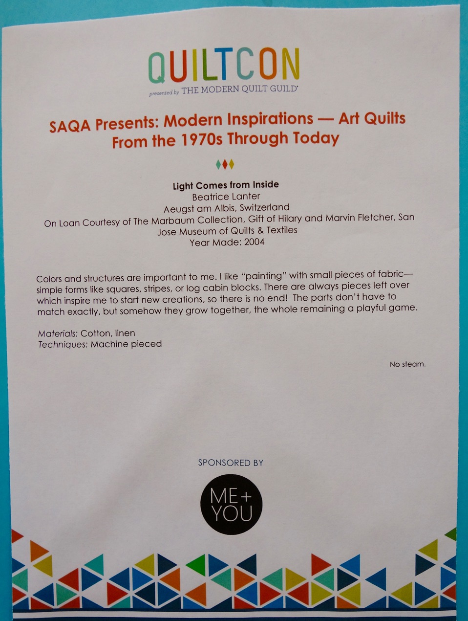 SAQA Presents: Modern Inspirations -- Art Quilts from the 1970s Through Today.