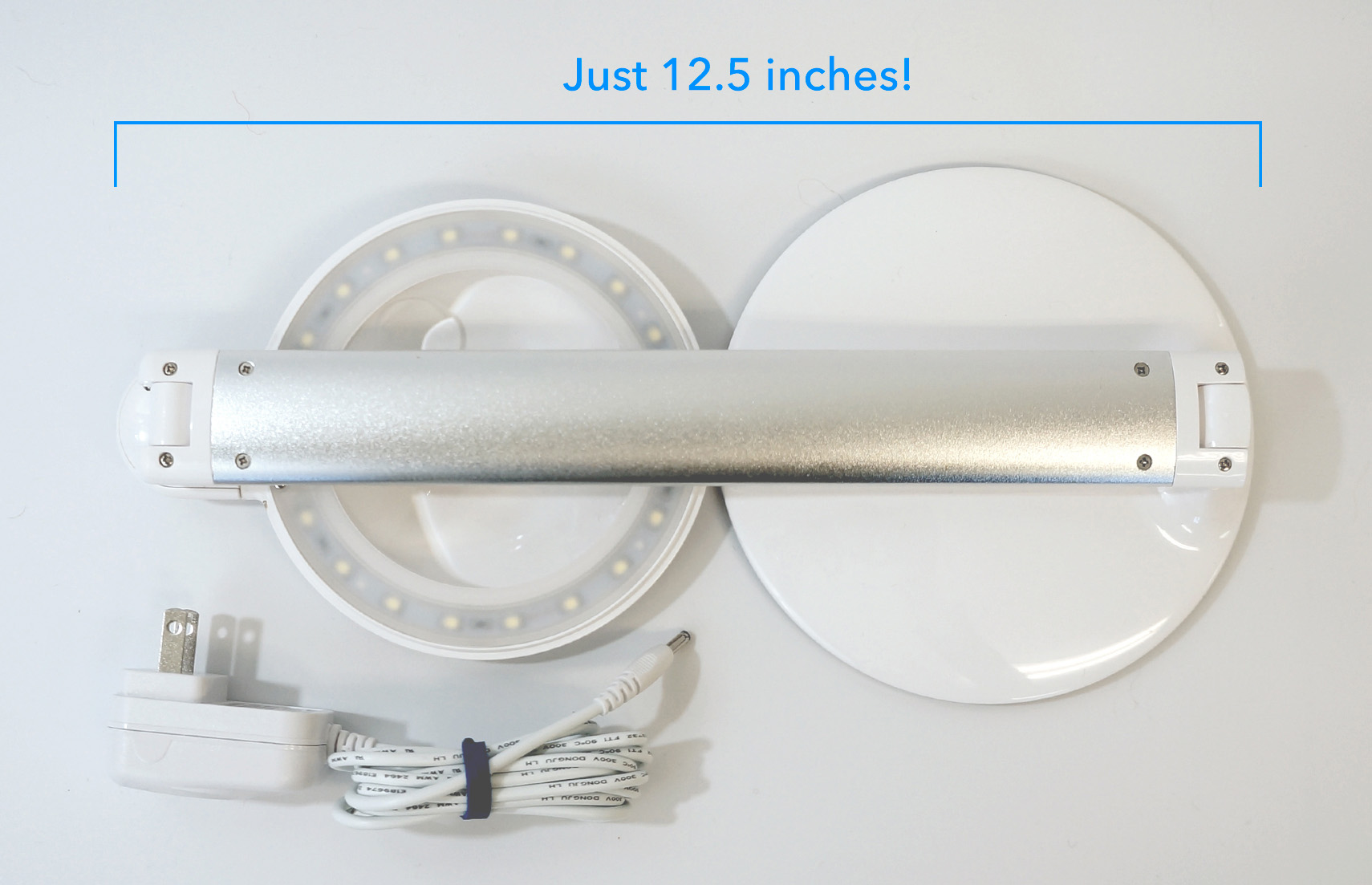 This lamp has a small footprint so it can easily fit on your desk or worktable, and it folds flat so you can pop it into a bag to go to a class, friend's house, retreat, etc.- just unfold it and plug it in and you are ready to get to work.