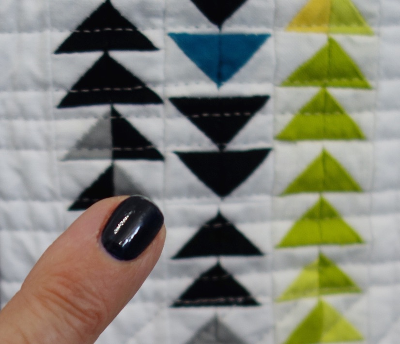 Laura Hartrich used her quilt as a means of visualizing her goals and she did it with some of the smallest half-square triangles we have ever seen. They are literally the size of a fingernail.