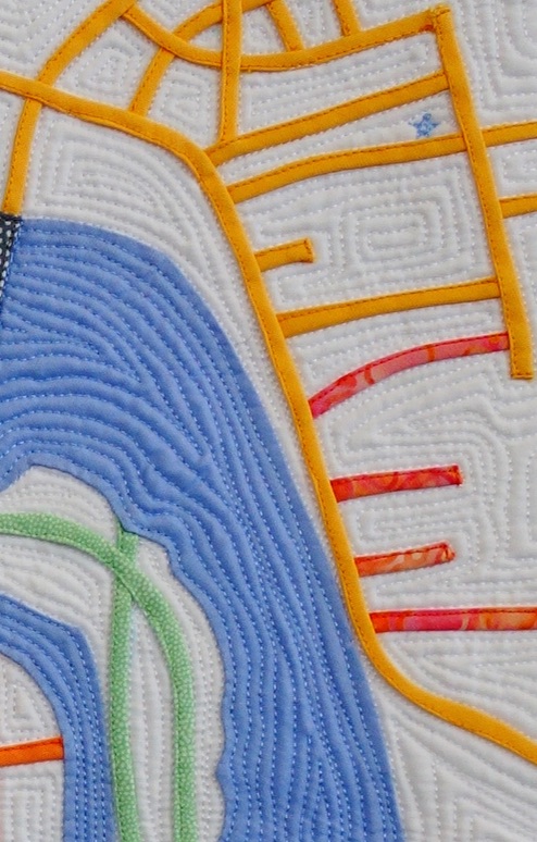 Timna Tarr did. She created a quilt based on Holyoke, Mass., one of the country's first planned industrial cities. In Holyoke 1938, she used the juxtaposition of the natural river and the planned gridded streets as design inspiration. She also noted where her house is just across the river.