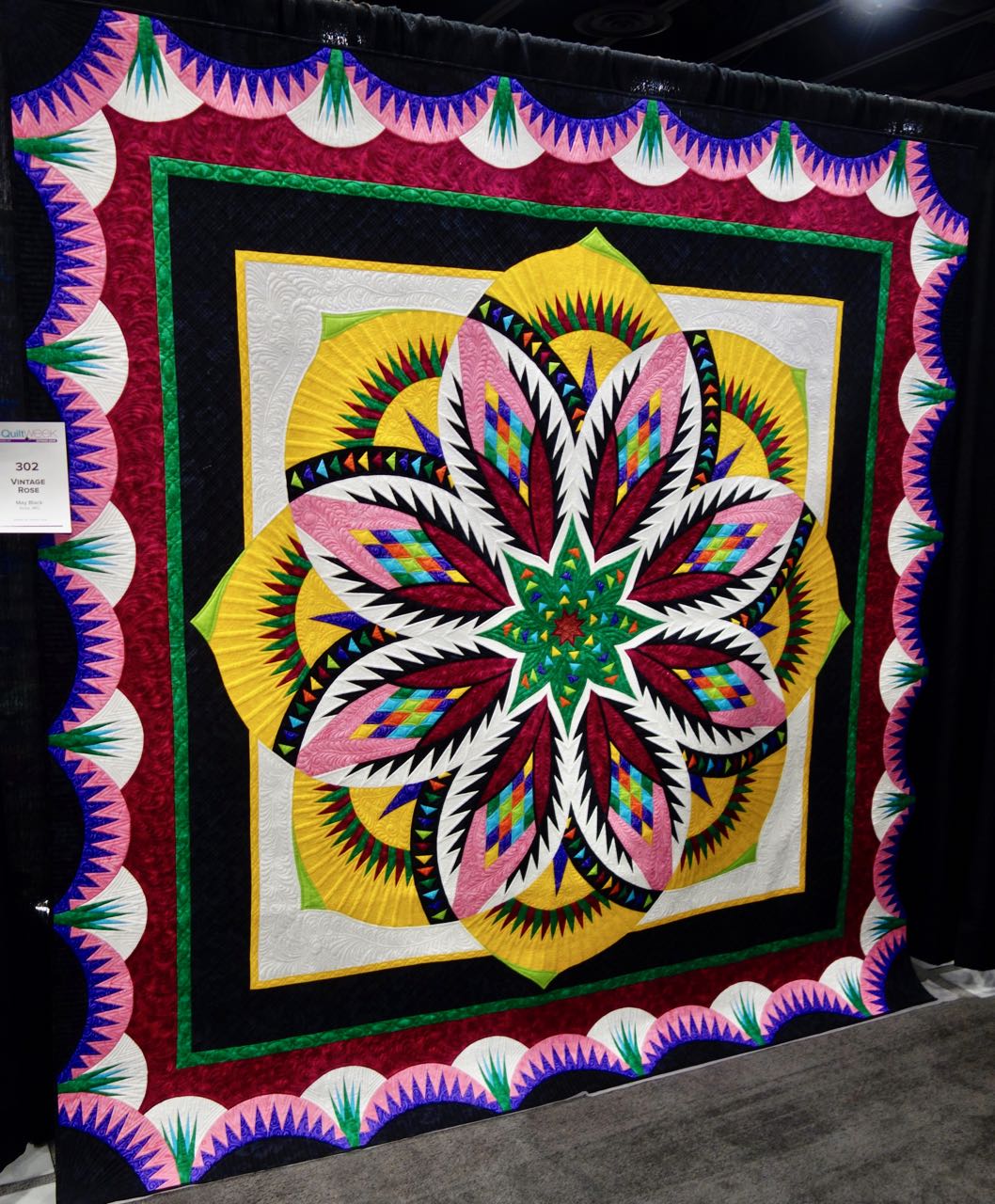 Capt'n John writes - "I haven't even gotten through half the quilts this year, but the colors are just jumping out everywhere. I also feel, like I did last year, that the quilts that didn't win are amazing too. Of course the winners are beautiful, but so are those that didn't win. This quilt by May Black is an example. May entered "Vintage Rose" (96x96) in the "1st Entry in an AQS Paducah Contest" category. The colors are so bright, I had to stop and take a look.