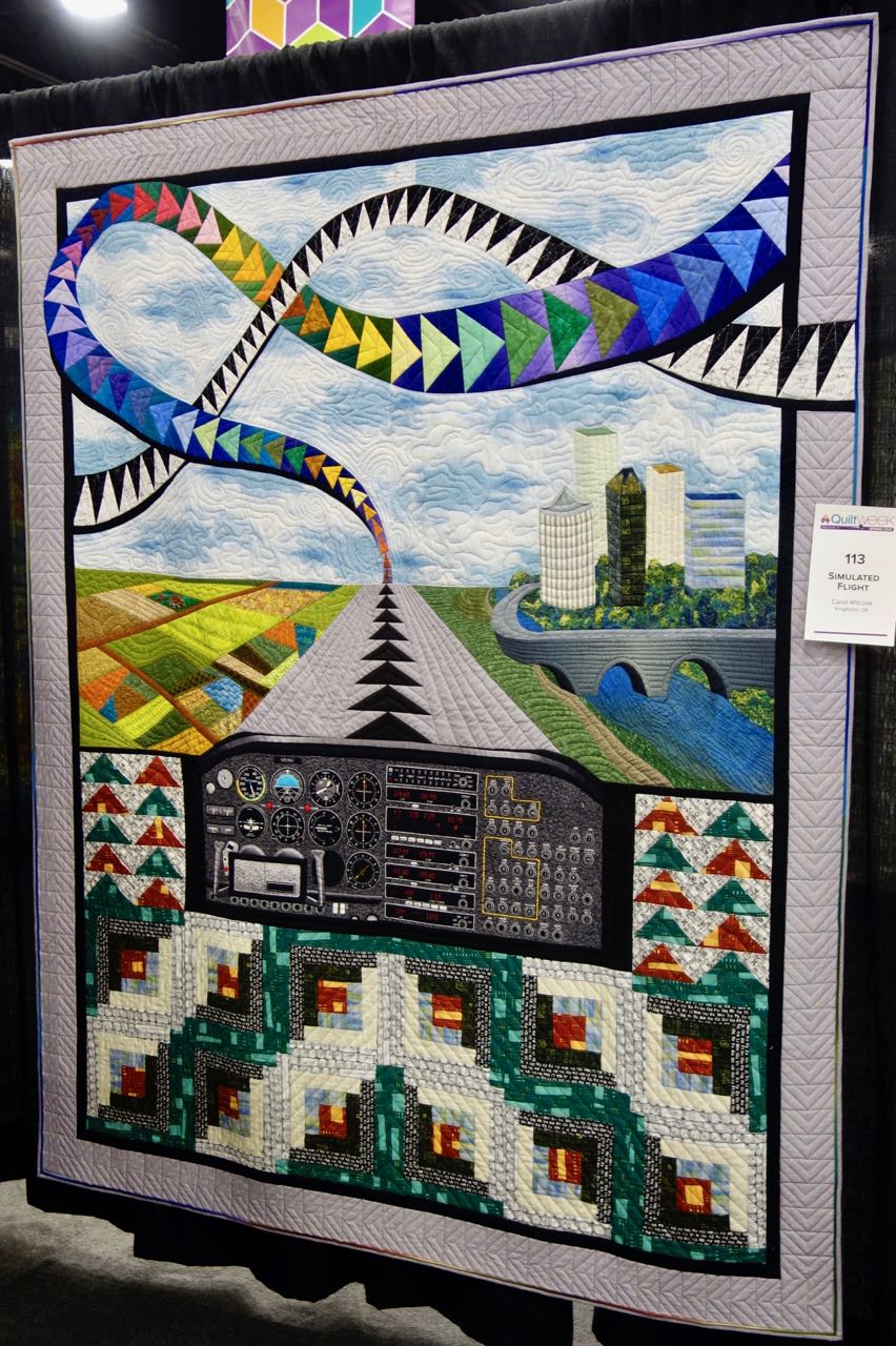 Carol's quilt "Simulated Flight" (67"x 84") charmed us a Spring Paducah 2018. She uses techniques such as Applipiecing, Hand Appliqué, Machine Appliqué, Free-Motion Quilting, Paper Piecing, Machine Piecing, and Piped Edging. Her design source is "Soaring Compliments" by Caryl Bryer Fallert-Gentry and you can get a FREE tutorial from Caryl on the technique.
