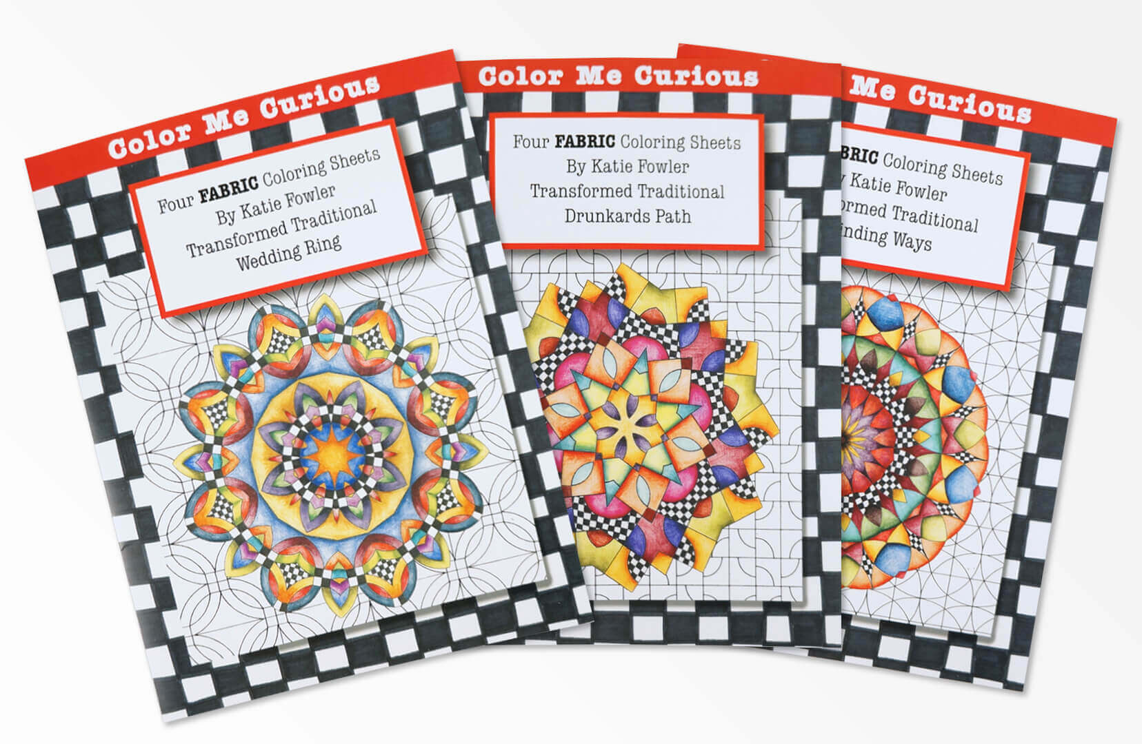 Use your coloring kit with Katie's Color Me Curious Fabric Coloring Sheets and create beautiful and colorful one-of-a kind mandala designs to sew or appliqué. When you are finished, you can use the kit to color your own designs!