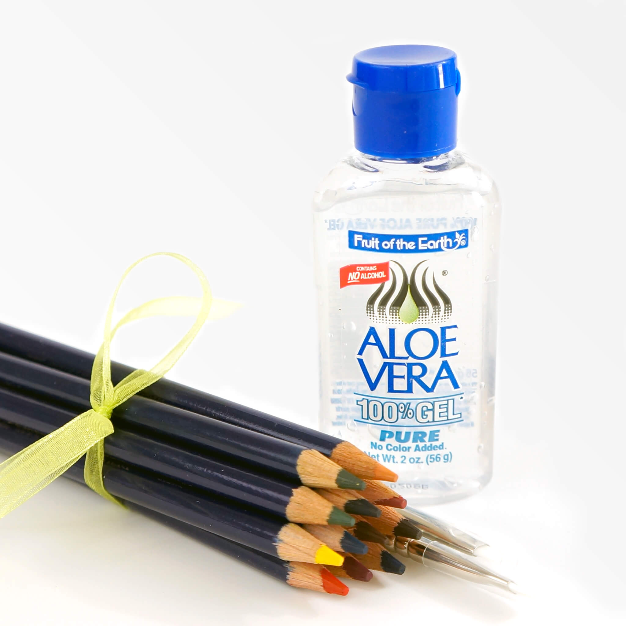 Each kit contains 12 Derwent Inktense Pencils, two paint brushes, 2 ounces of aloe gel, and a plastic storage bag to stow your kit safely when you aren't using it.
