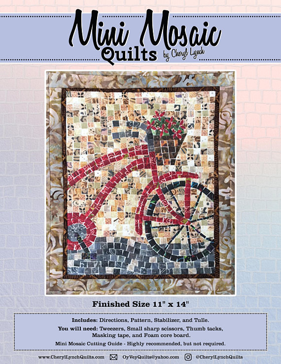 Each kit contains the pattern, sticky stabilizer for assembly, "tile" and "grout" fabrics, tulle netting for finishing your mosaic, and full instructions. You will need to provide small fabric pieces for the sashing and border from your stash.