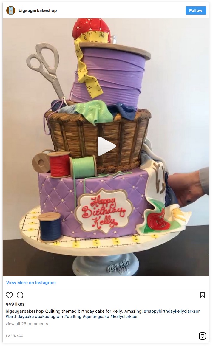 A beloved American Idol winner recently celebrated her 36th birthday with a quilting-themed cake from the Big Sugar Bakeshop. She also completed her first quilt for her child's birthday. Did you guess who it was? It's Kelly Clarkson!