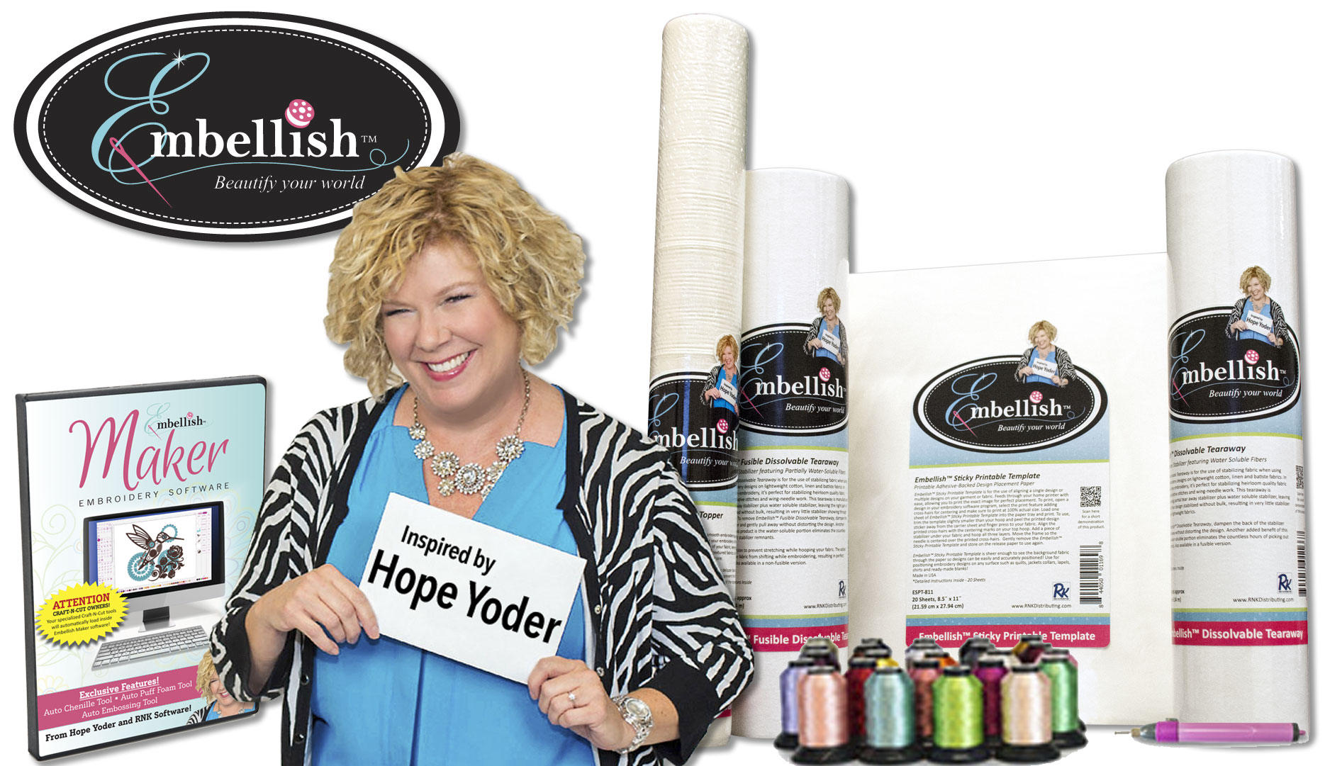 I want to introduce myself. My name is Hope Yoder and I am an avid machine embroiderer, crafter and Sewist. I am also the owner of Designs By Hope Yoder, a machine Embroidery company specializing in designs for the home sewing industry and the face of Craft-N-Cut™ software (crafting software in the Quilter’s Select™ line from RNK Distributing).