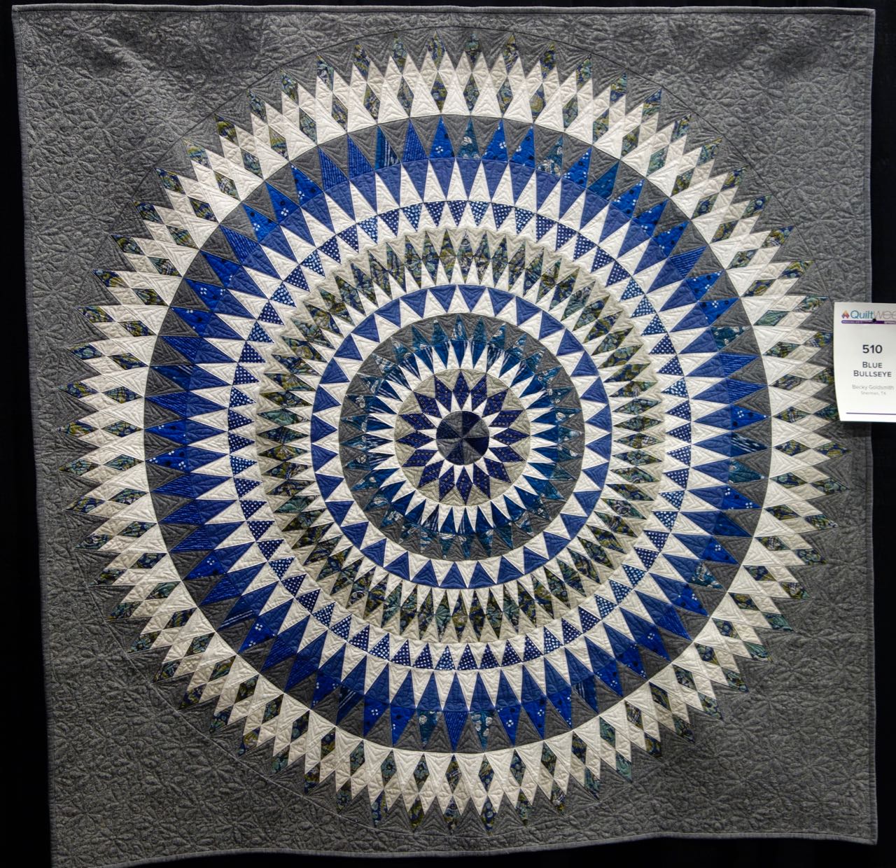 Becky's quilt, Blue Bullseye, was exhibited at Spring Paducah 2018. Her techniques included Free-Motion Quilting, Foundation Piecing, Paper Piecing, and Machine Piecing. Her Design Source: Bullseye quilt, Glorious American Quilts: The Quilt Collection of the Museum of American Folk Art by Elizabeth V. Warren and Sharon L Eisenstat.