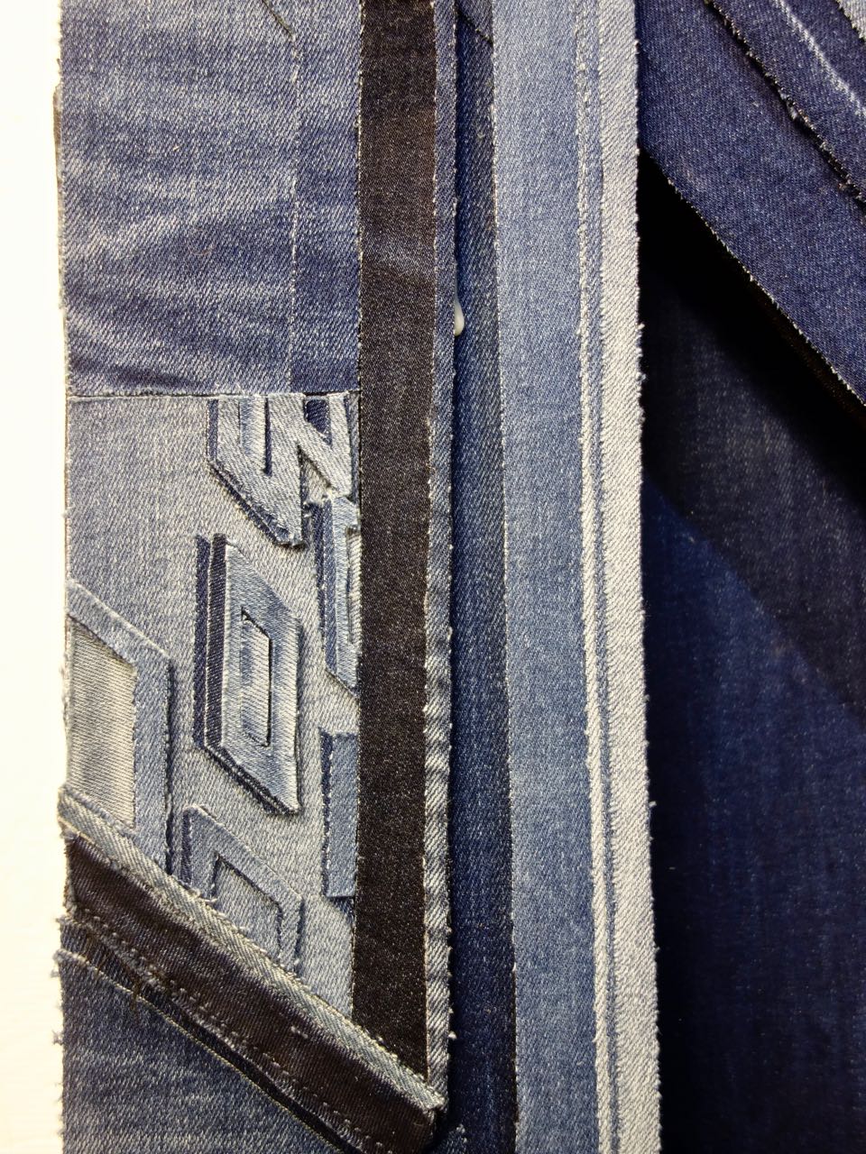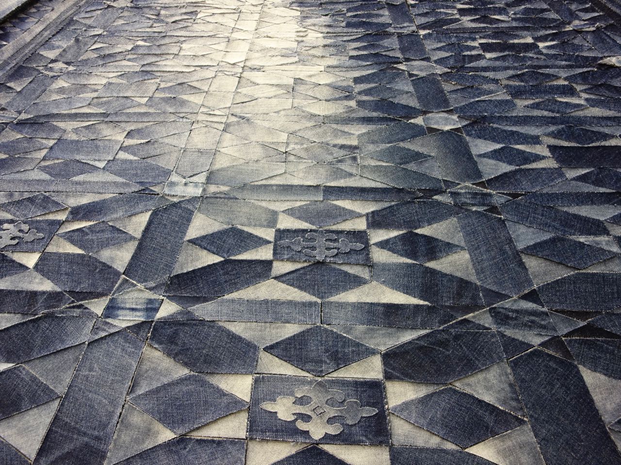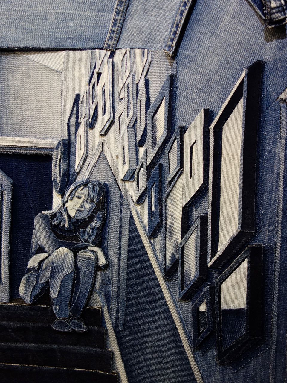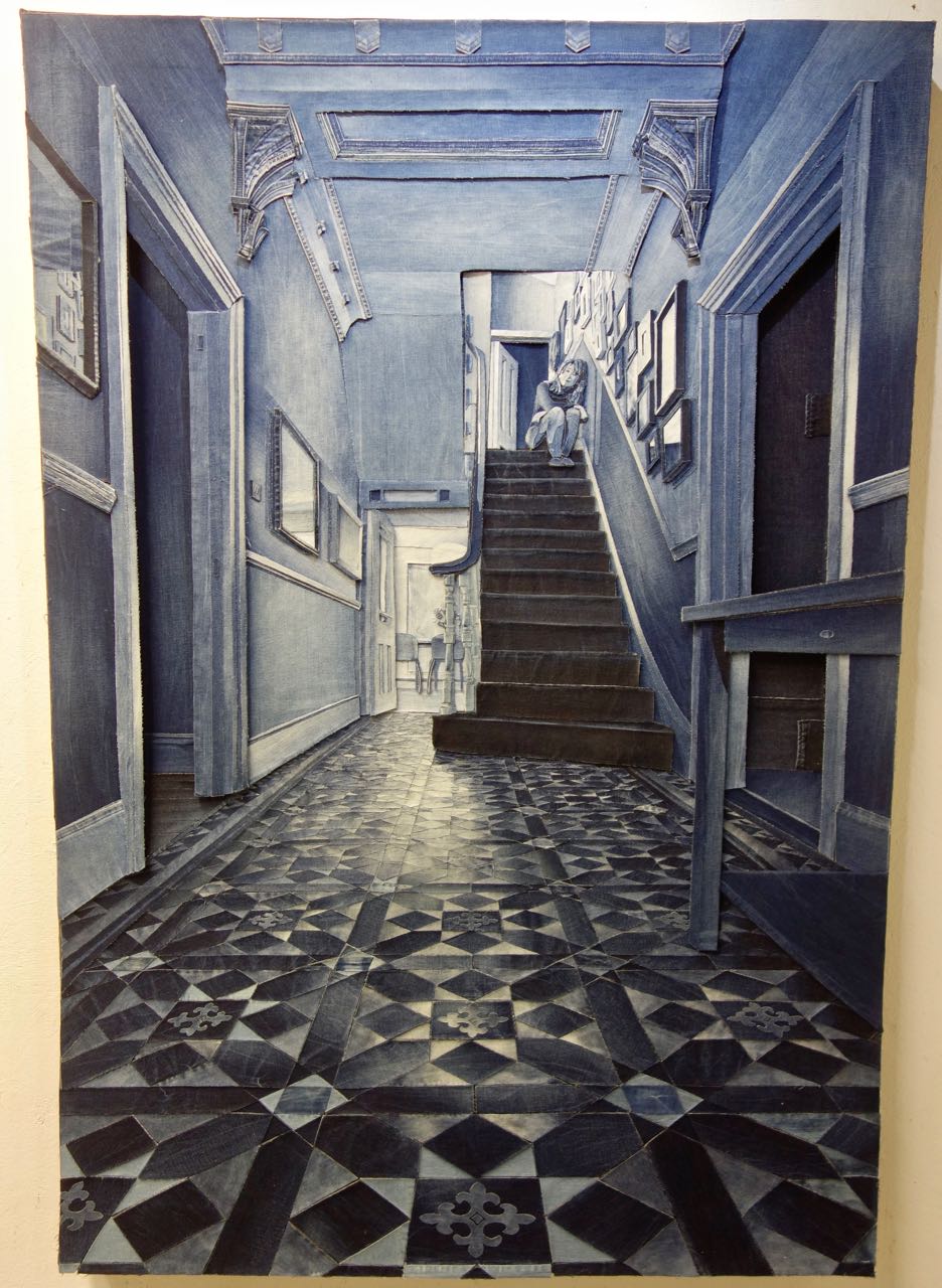 We had requests to see Ian Berry's work up close. This is one of Capt'n John's favorites of Ian's work. Look at the detail of the floor, the expression on her face, the wall sconces, and the view out the windows - all done with cut up denim. WOW! A big thank you to AQS for getting Ian into the Spring Paducah 2018 show.