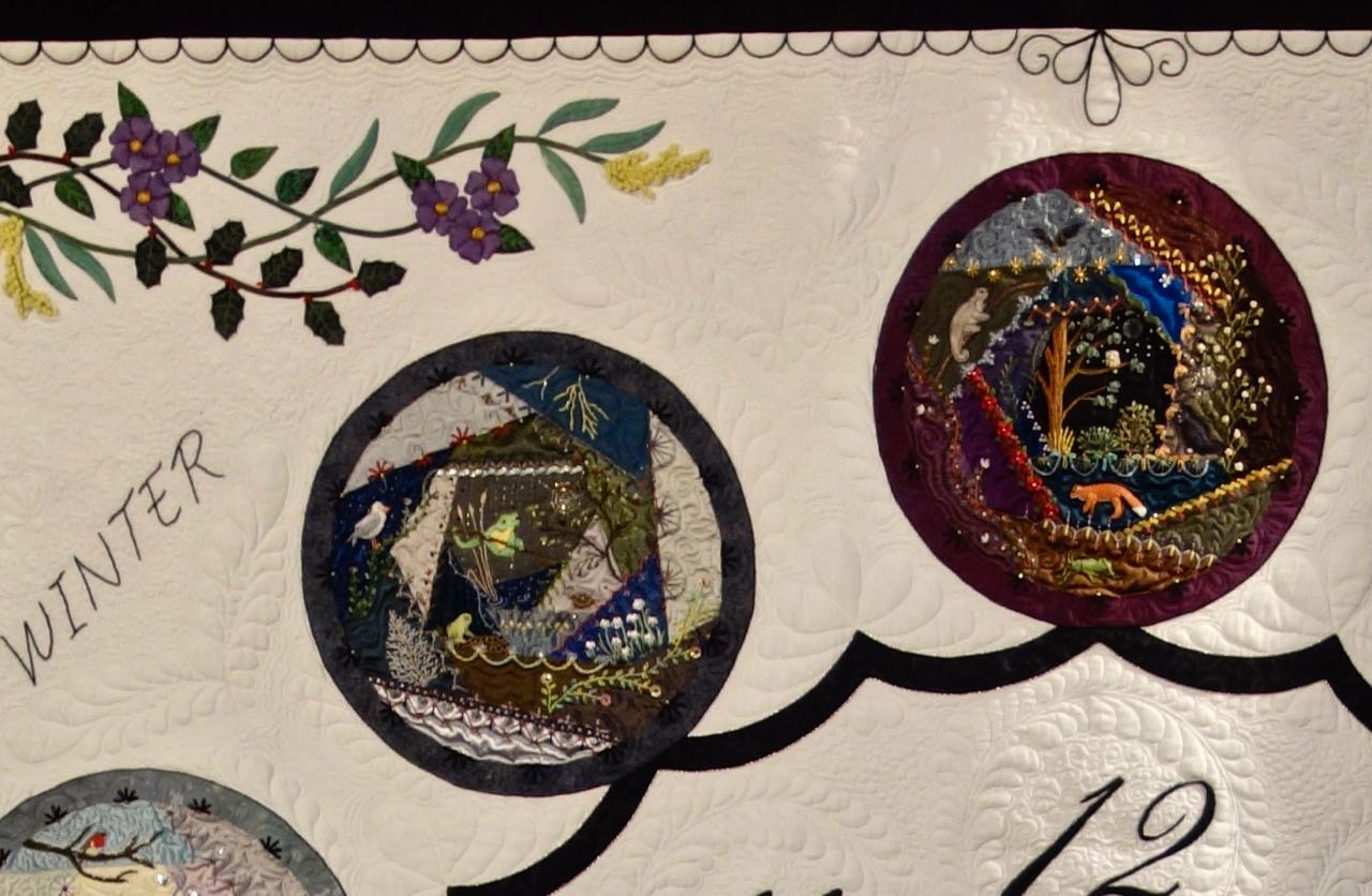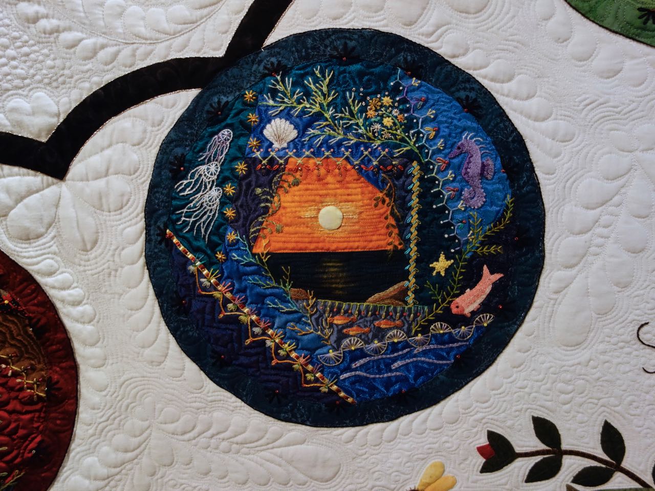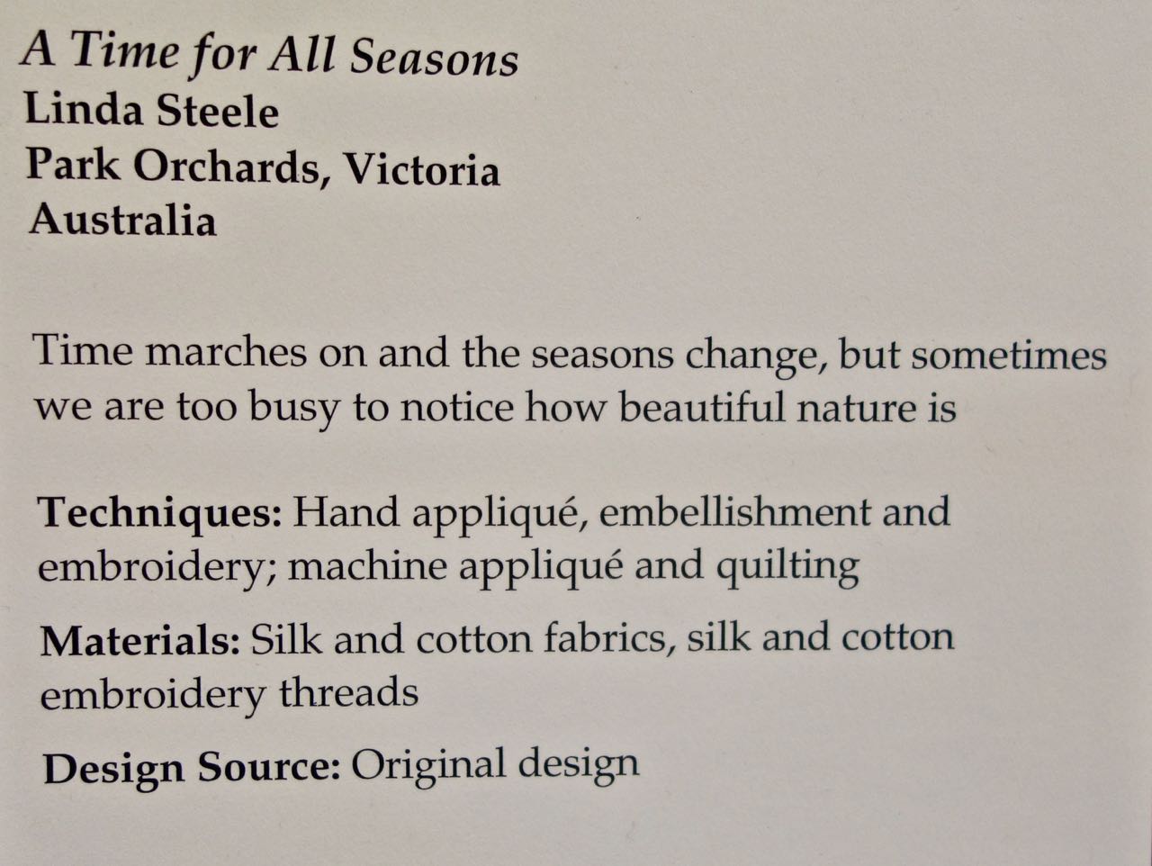 We looked outside on Father's Day and realized that summer was started and running. Time is slipping by quickly. It reminded us of a quilt we saw in Houston 2016. "A Time For All Seasons" is an elegant look at the earth's changes throughout the year. The quilt is beautifully embellished with embroidery for each season. Make sure to notice the appliqué, the marvelous quilting, and the fun border. Also, remember to find time to enjoy the summer.